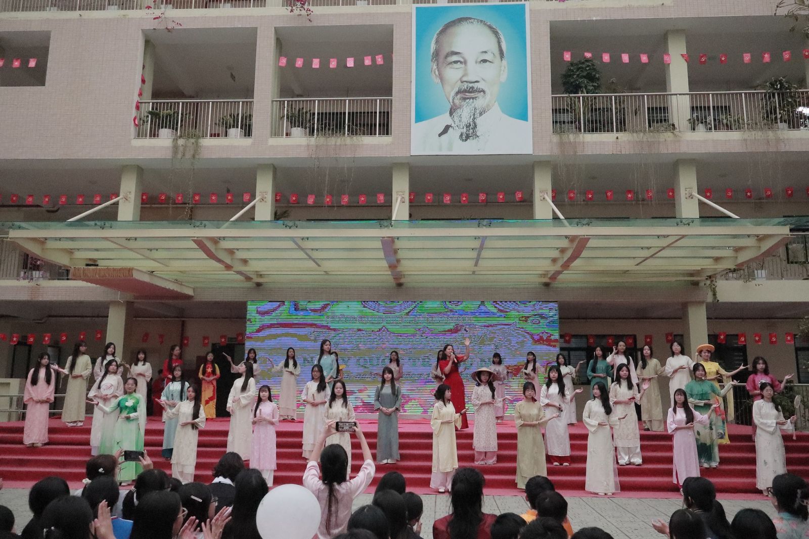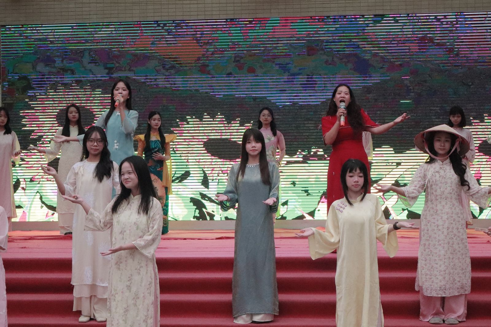 Bên cạnh các phần thi sôi nổi, trong chương trình các bạn nữ sinh còn tham gia trình diễn áo dài vô cùng duyên dáng, mang đến những hình ảnh đẹp và đầy tự hào về nét đẹp truyền thống của trang phục Việt Nam.