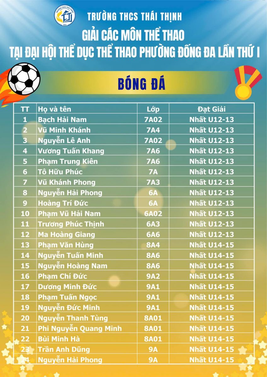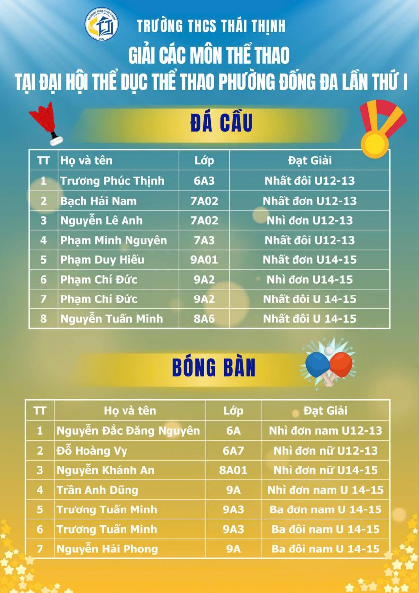 - Thành tích hôm nay là động lực để đội tuyển thể thao nhà trường tiếp tục bứt phá mạnh mẽ hơn nữa trong các giải đấu tiếp theo!