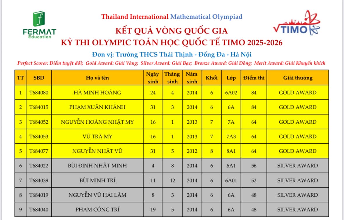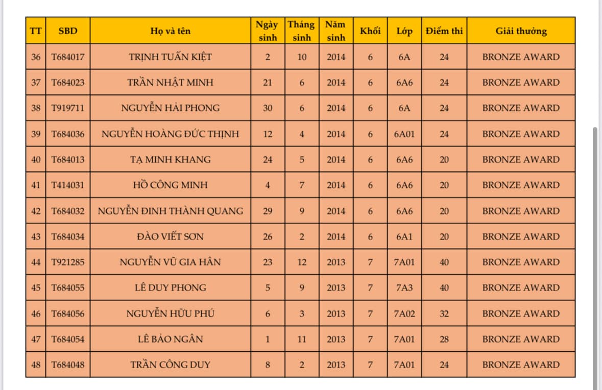 Đây không chỉ là minh chứng cho năng lực tư duy toán học, bản lĩnh và sự nỗ lực không ngừng của các em học sinh, mà còn thể hiện chất lượng giáo dục, sự tận tâm của đội ngũ thầy cô và sự đồng hành quý báu từ các bậc phụ huynh nhà trường.