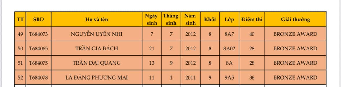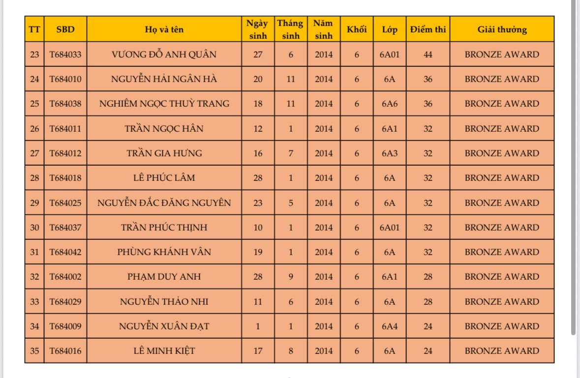 Nhà trường trân trọng biểu dương và chúc mừng tất cả các em học sinh đã tham gia kỳ thi. Dù đạt giải hay chưa đạt giải, mỗi em đều xứng đáng được ghi nhận vì tinh thần học tập nghiêm túc, dám thử sức và không ngừng vươn lên.