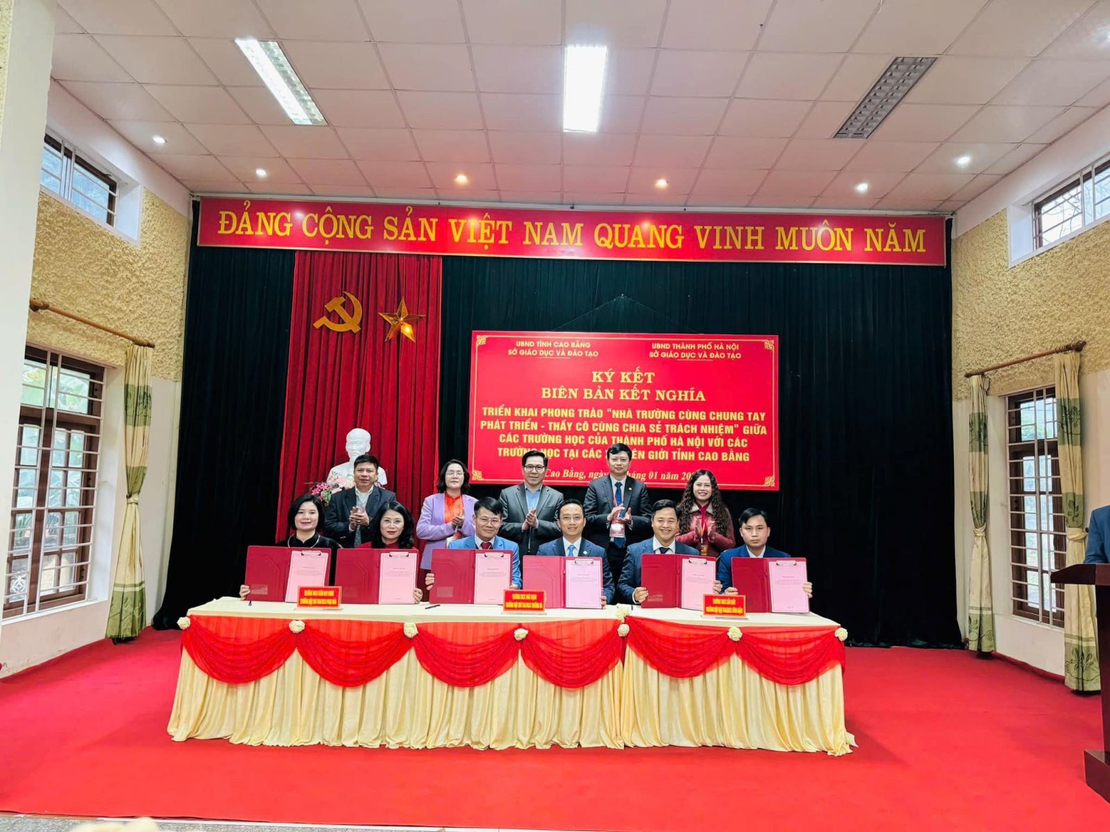 Chiều cùng ngày, 28/1/2026, trường THCS Thái Thịnh cũng đã kí kết bản ghi nhớ thực hiện chương trình “Nhà trường cùng chung tay phát triển, Thầy cô cùng sẻ chia trách nhiệm” với trường PTDT nội trú THCS Trường Hà, xã Trường Hà, tỉnh Cao Bằng.