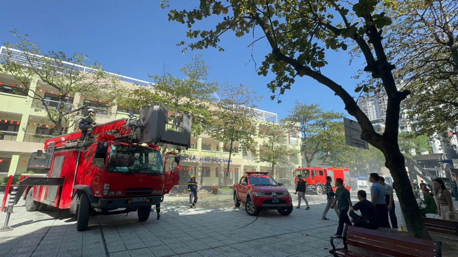 -Trong buổi tổng duyệt, các tình huống giả định được xây dựng sát với thực tế: cháy tại khu vực phòng học, có người bị mắc kẹt, khói lan nhanh… Lực lượng chữa cháy và cứu nạn đã nhanh chóng triển khai phương án báo động, sơ tán học sinh, dập lửa, cứu người và xử lý tình huống khẩn cấp một cách nhịp nhàng, chính xác và an toàn tuyệt đối.