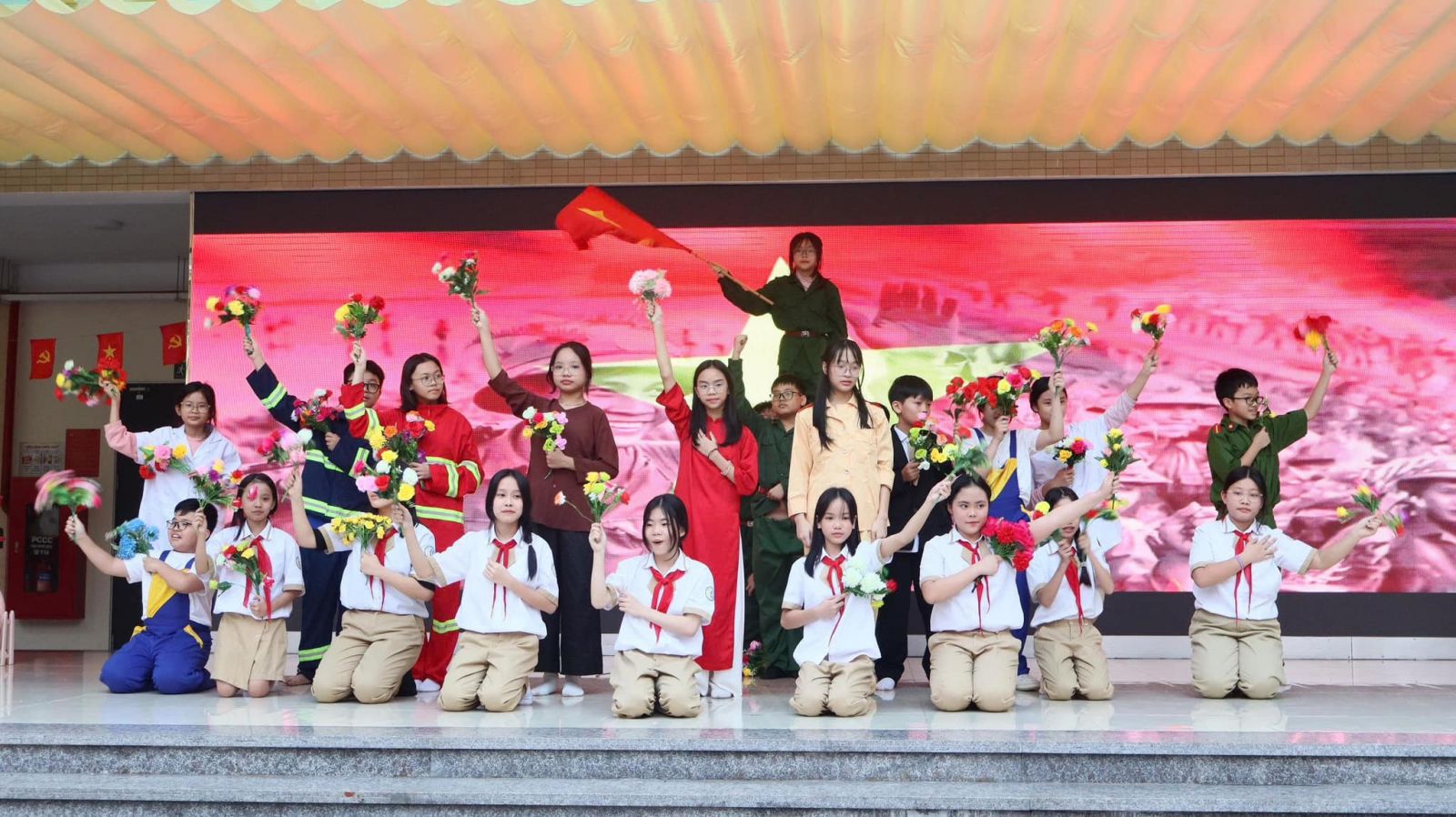 Điểm nhấn của chương trình là tiết mục Sinh hoạt dưới cờ do tập thể lớp 6A1 thực hiện với chủ đề: