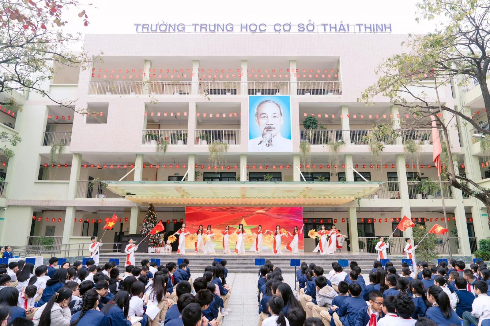 - Chương trình văn nghệ chào mừng do các bạn học sinh lớp 6A6 và 8A6 biểu diễn cũng đã mang đến không khí tươi vui, trong trẻo, thể hiện tình yêu mái trường và niềm tự hào của học sinh Thái Thịnh.
