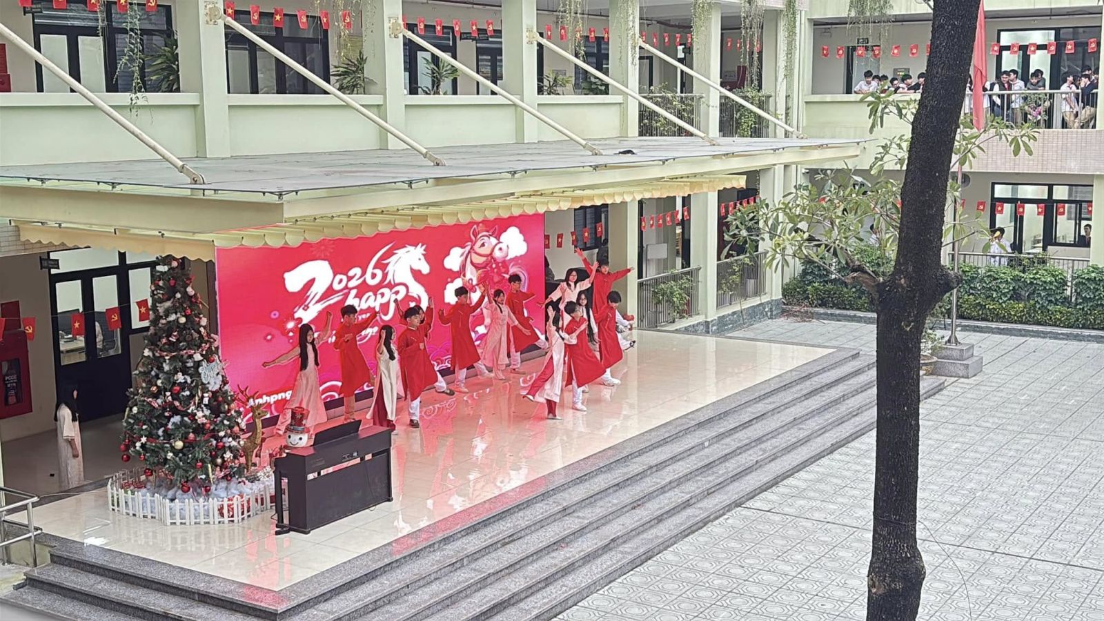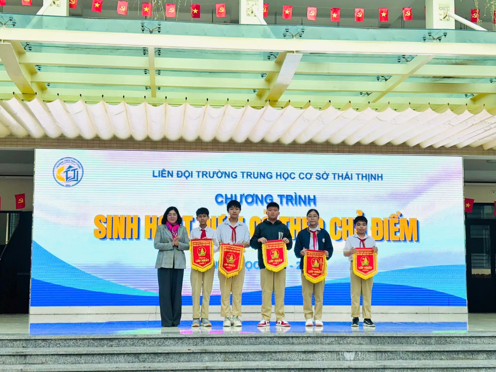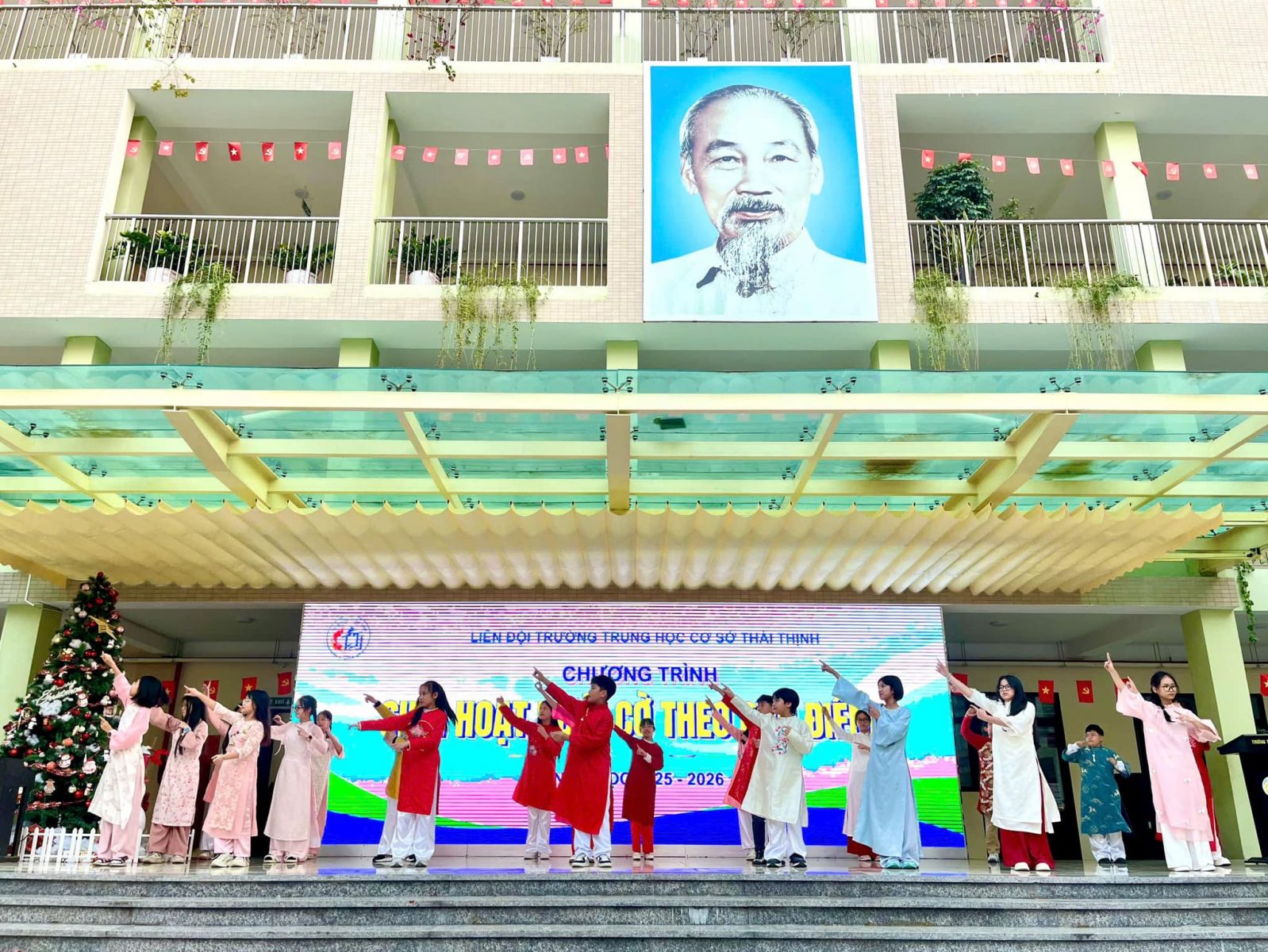 Chương trình thêm phần rộn ràng với những tiết mục sinh hoạt dưới cờ đặc sắc, được chuẩn bị công phu và thể hiện đầy tự tin đến từ tập thể lớp 8A3 và 6A3. Các tiết mục không chỉ mang đậm màu sắc tươi vui của ngày xuân mà còn thể hiện niềm tự hào, lòng biết ơn và niềm tin son sắt vào sự lãnh đạo của Đảng.