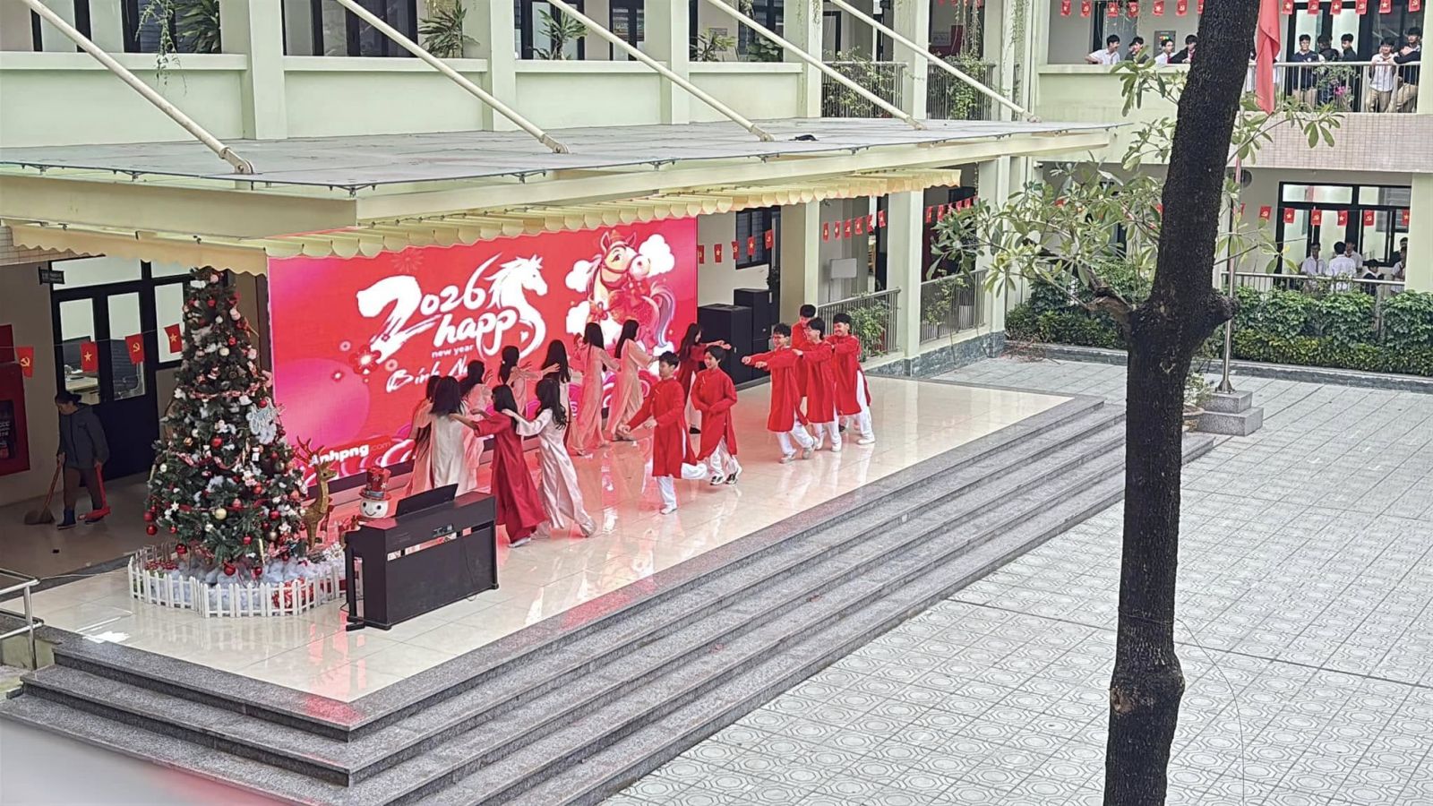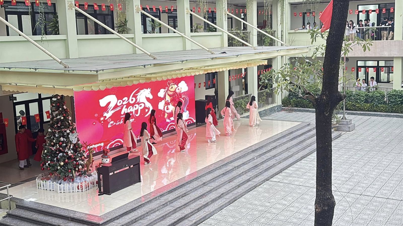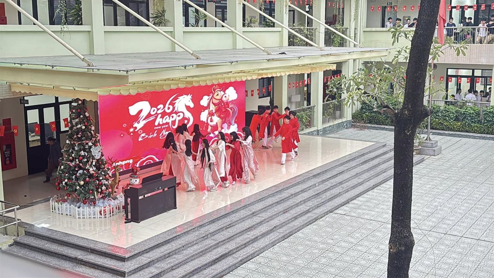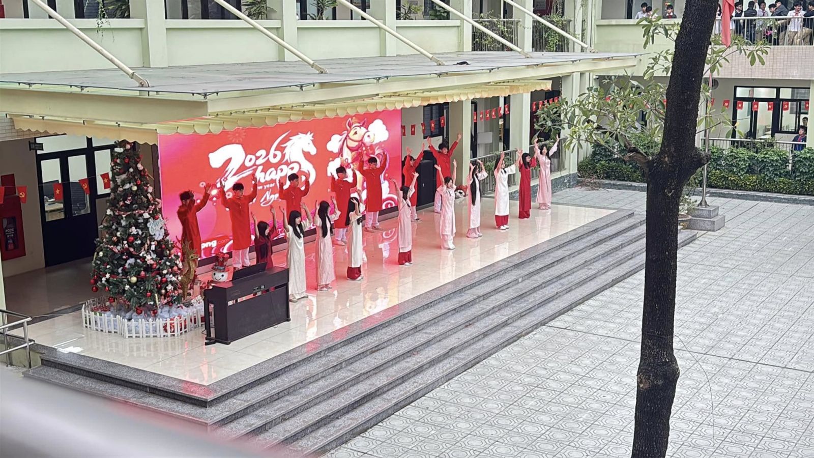 Chương trình thêm phần rộn ràng với những tiết mục sinh hoạt dưới cờ đặc sắc, được chuẩn bị công phu và thể hiện đầy tự tin đến từ tập thể lớp 8A3 và 6A3. Các tiết mục không chỉ mang đậm màu sắc tươi vui của ngày xuân mà còn thể hiện niềm tự hào, lòng biết ơn và niềm tin son sắt vào sự lãnh đạo của Đảng.