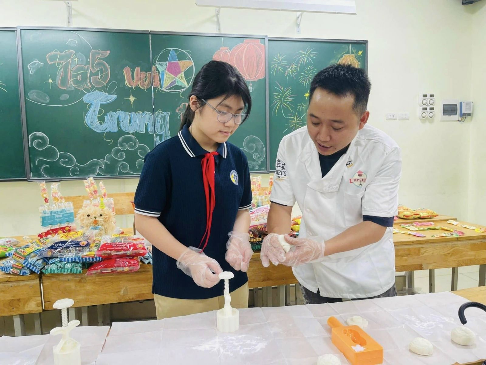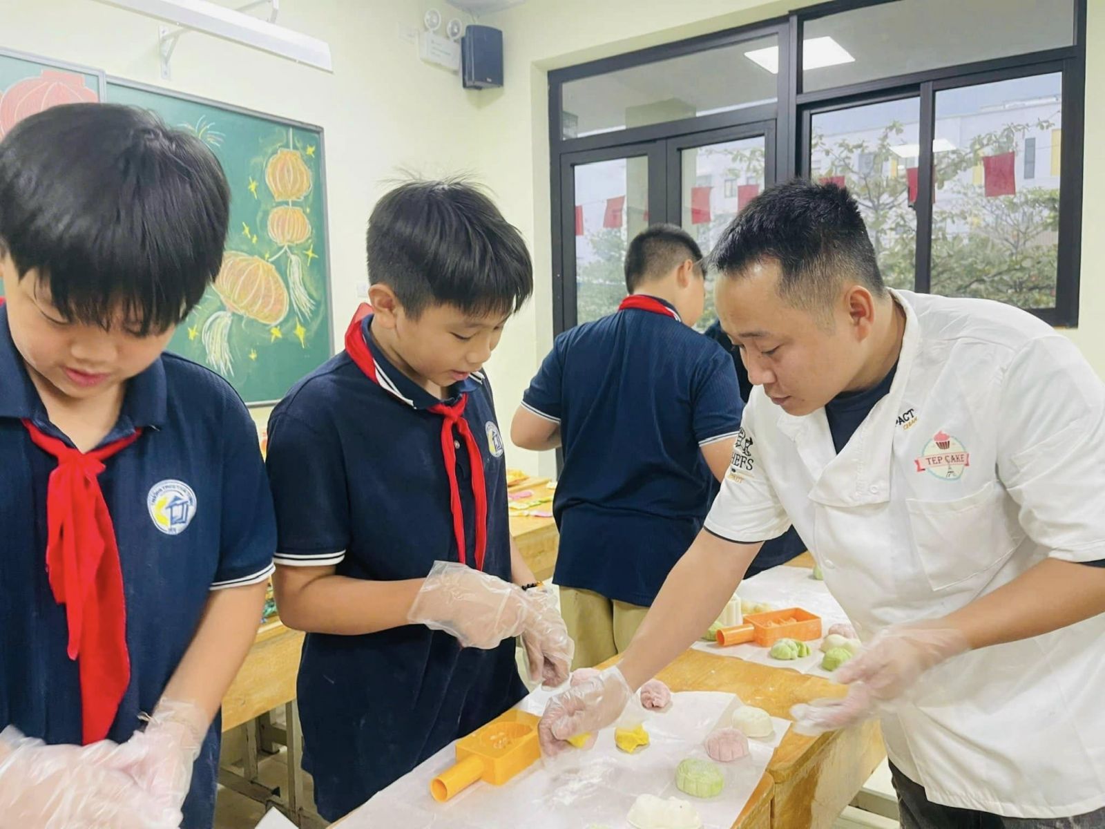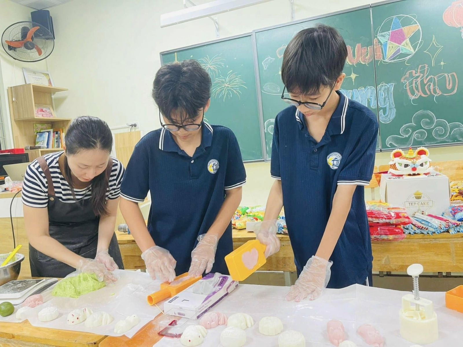 Điểm nhấn ấn tượng nhất chính là hoạt động hướng dẫn làm bánh Trung thu. Với sự đồng hành nhiệt tình của các bậc phụ huynh, các bạn học sinh đã có cơ hội được tự tay nặn, tạo hình và trang trí những chiếc bánh nhỏ xinh, gửi gắm vào đó tình yêu thương và sự gắn kết. Hoạt động không chỉ giúp các em hiểu hơn về giá trị truyền thống, mà còn nuôi dưỡng tinh thần sẻ chia, gắn bó giữa thầy cô – phụ huynh – học sinh.