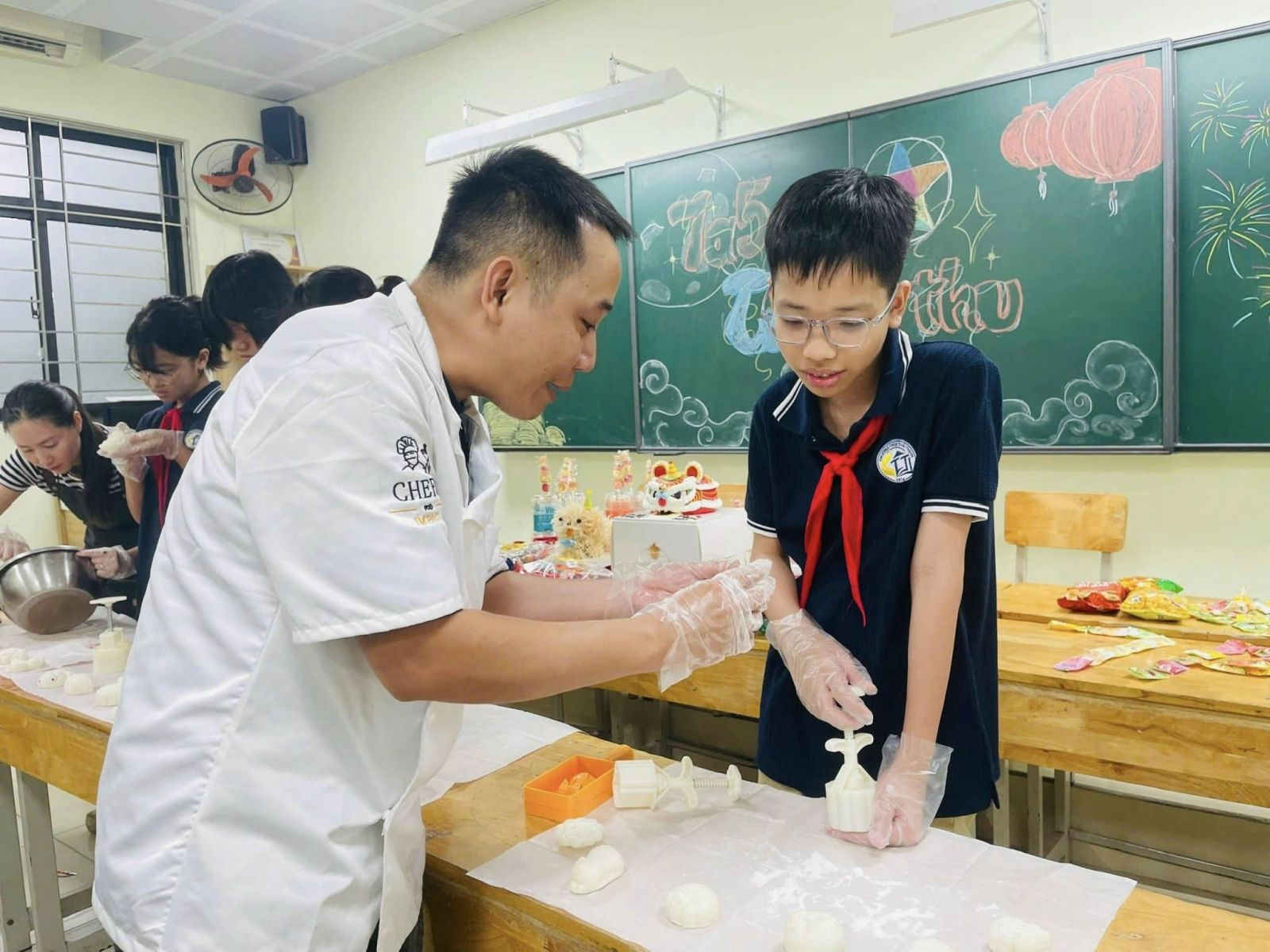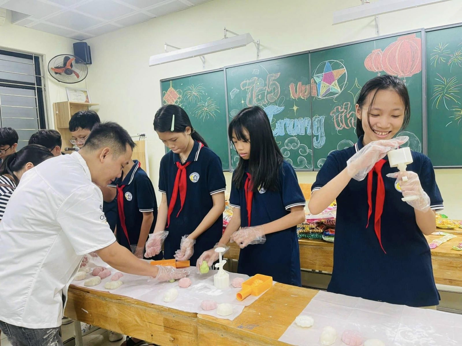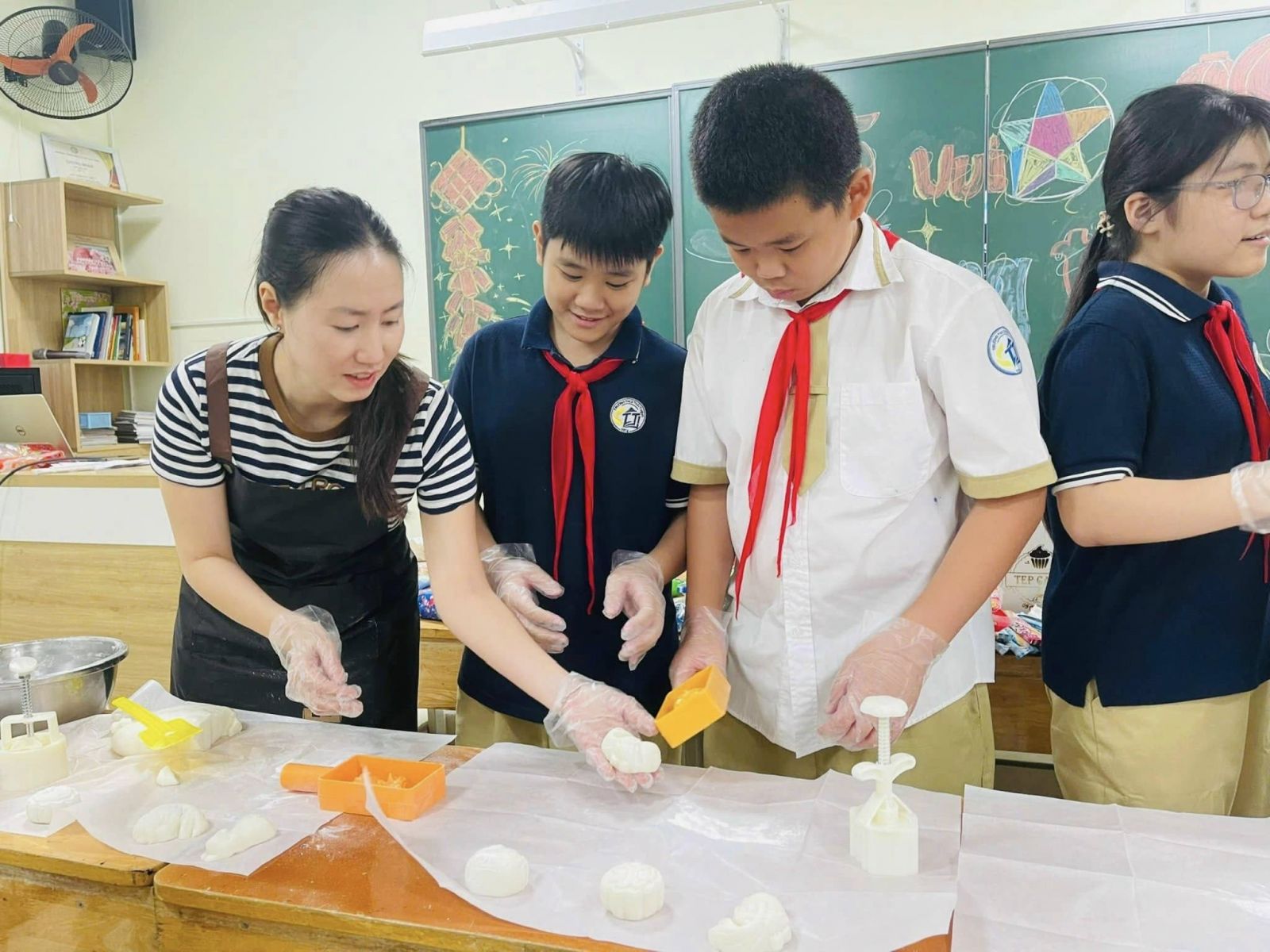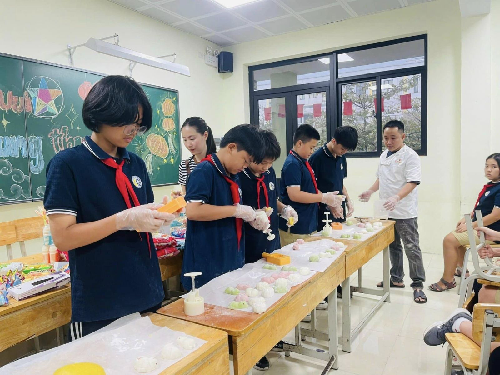 Điểm nhấn ấn tượng nhất chính là hoạt động hướng dẫn làm bánh Trung thu. Với sự đồng hành nhiệt tình của các bậc phụ huynh, các bạn học sinh đã có cơ hội được tự tay nặn, tạo hình và trang trí những chiếc bánh nhỏ xinh, gửi gắm vào đó tình yêu thương và sự gắn kết. Hoạt động không chỉ giúp các em hiểu hơn về giá trị truyền thống, mà còn nuôi dưỡng tinh thần sẻ chia, gắn bó giữa thầy cô – phụ huynh – học sinh.