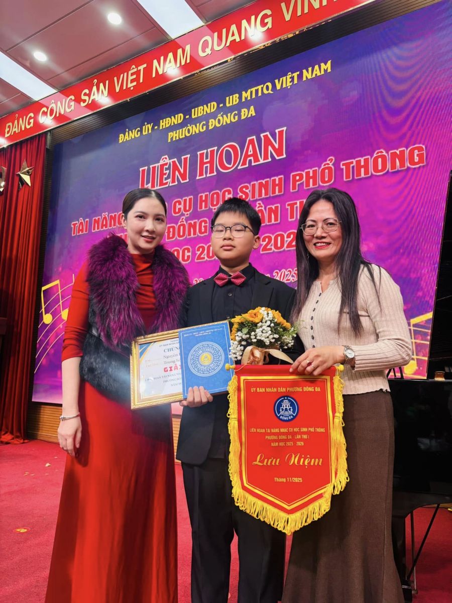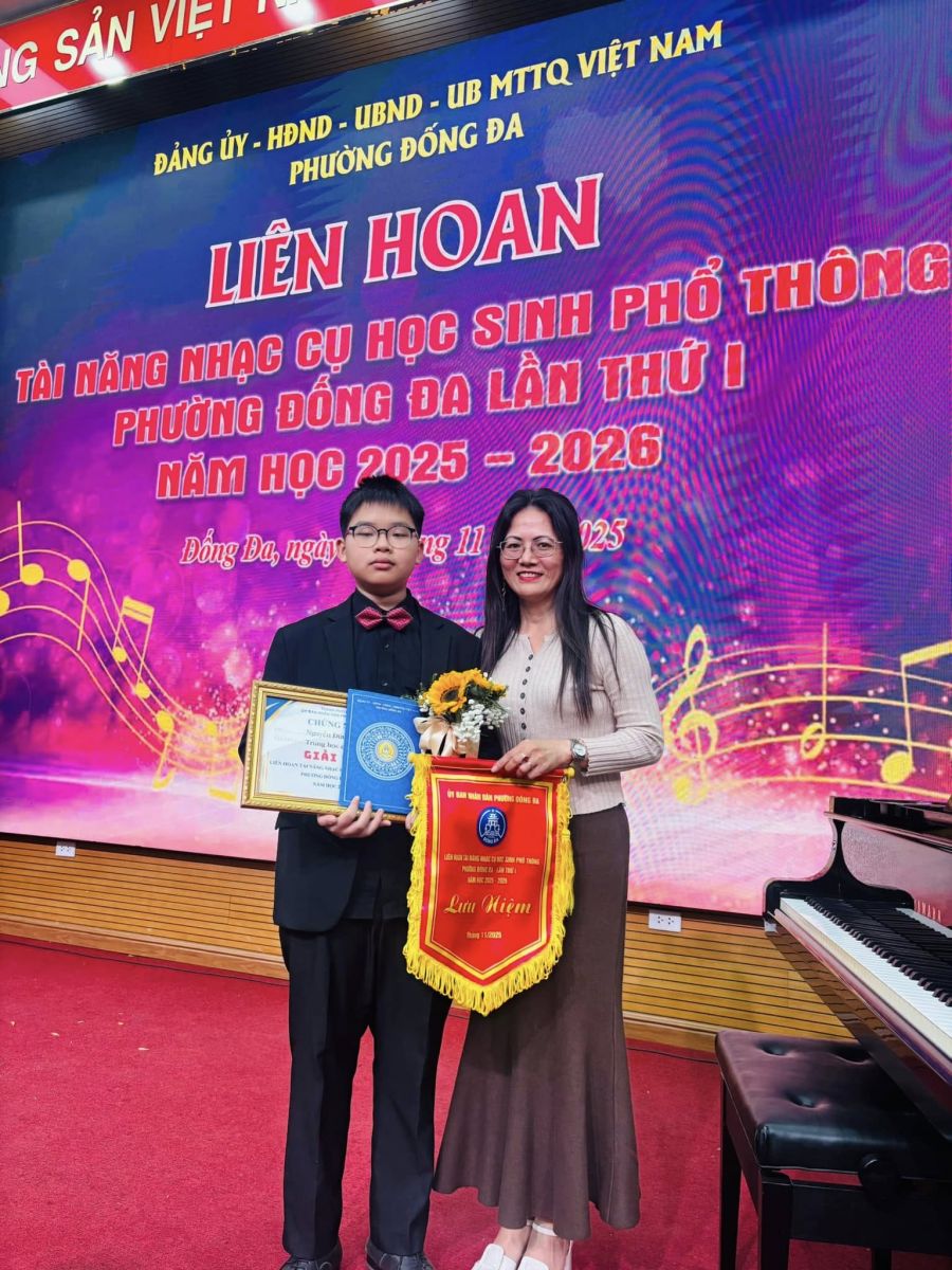 Hôm nay, tại Liên hoan Tài năng Nhạc cụ học sinh phổ thông phường Đống Đa lần thứ nhất, năm học 2025–2026, em Nguyễn Đức Nam – học sinh lớp 7A6 đã xuất sắc thể hiện bản lĩnh, kỹ năng và niềm đam mê âm nhạc của mình, và vinh dự đạt Giải Nhì của Liên hoan.
