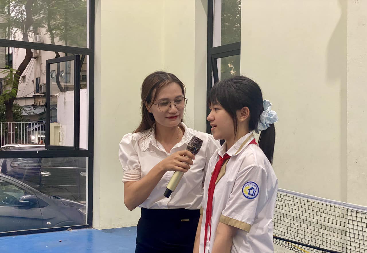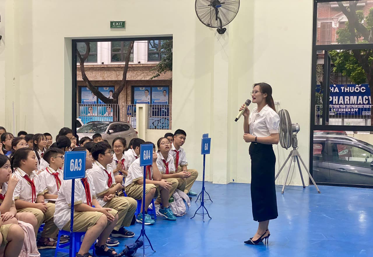 - Bà Nguyễn Thị Hà – trực tiếp truyền thông, chia sẻ cùng học sinh.