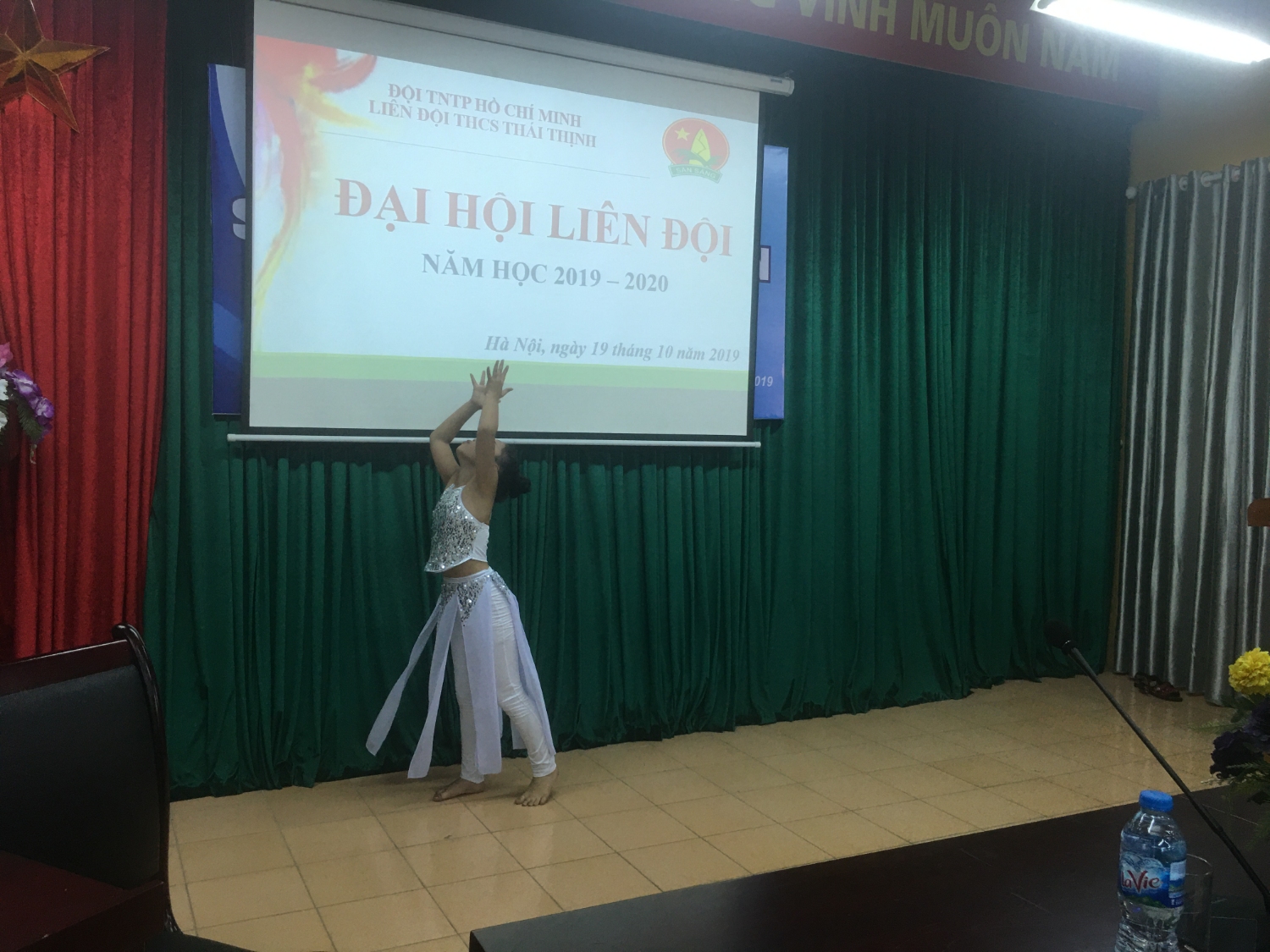 Điệu múa uyển chuyển do bạn Phạm Phương Vy (6A5) và bạn Đặng Quỳnh Trang (6A1) biểu diễn đã để lại ấn tượng đối với các bạn đội viên tham dự đại hội