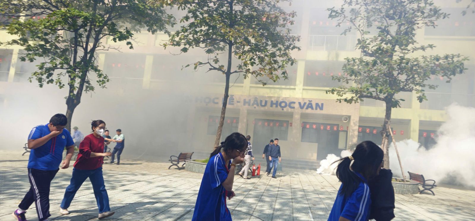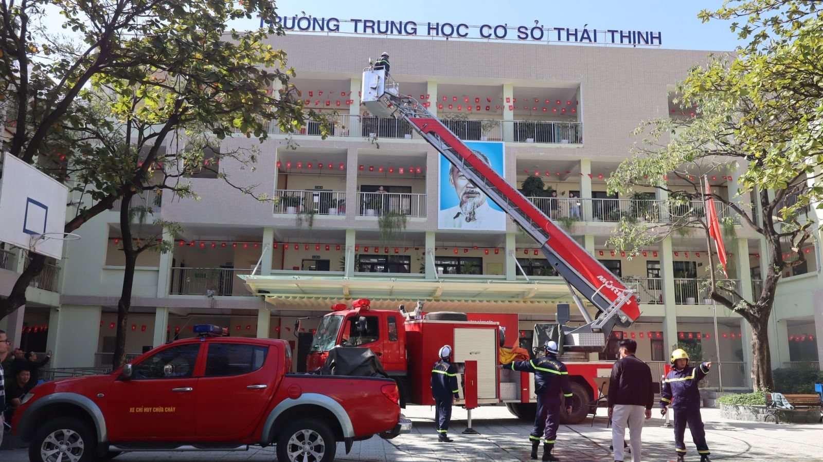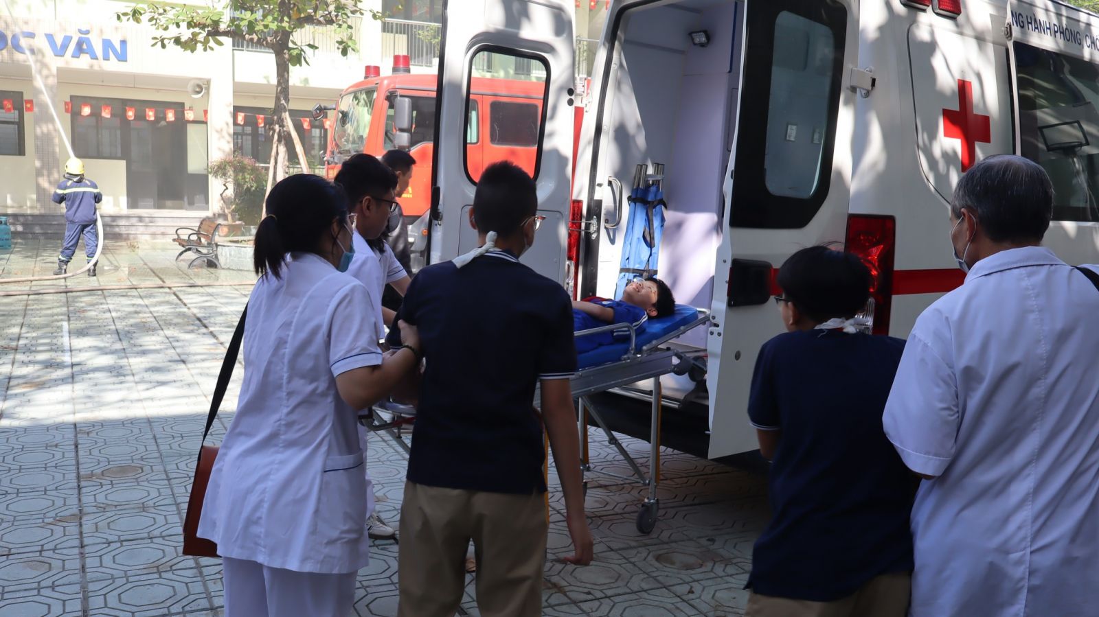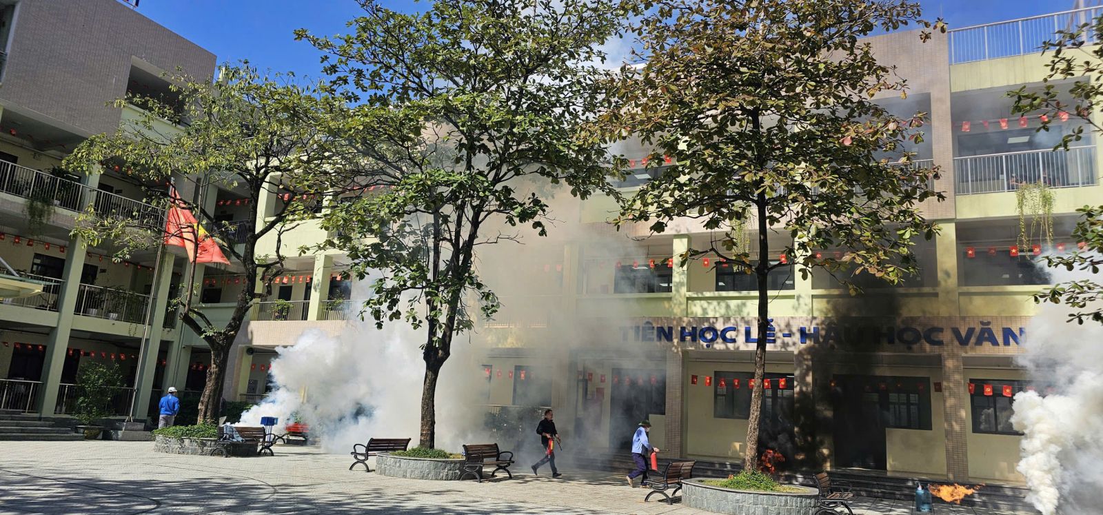 -Trong buổi tổng duyệt, các tình huống giả định được xây dựng sát với thực tế: cháy tại khu vực phòng học, có người bị mắc kẹt, khói lan nhanh… Lực lượng chữa cháy và cứu nạn đã nhanh chóng triển khai phương án báo động, sơ tán học sinh, dập lửa, cứu người và xử lý tình huống khẩn cấp một cách nhịp nhàng, chính xác và an toàn tuyệt đối.