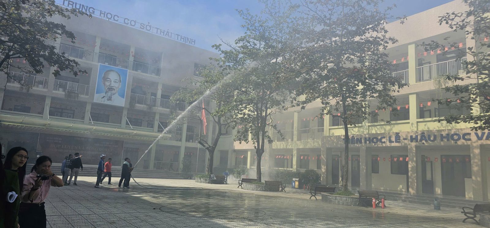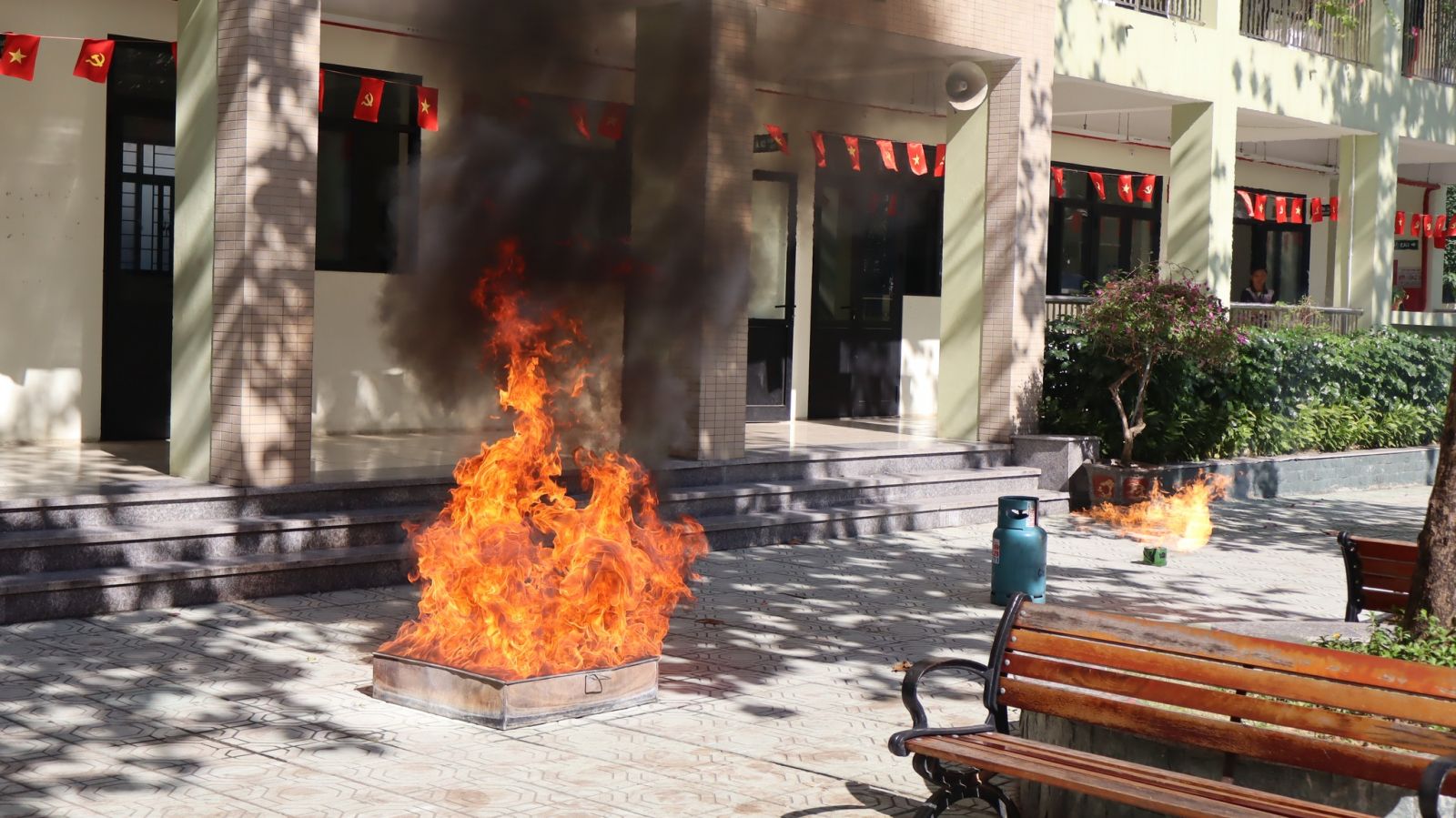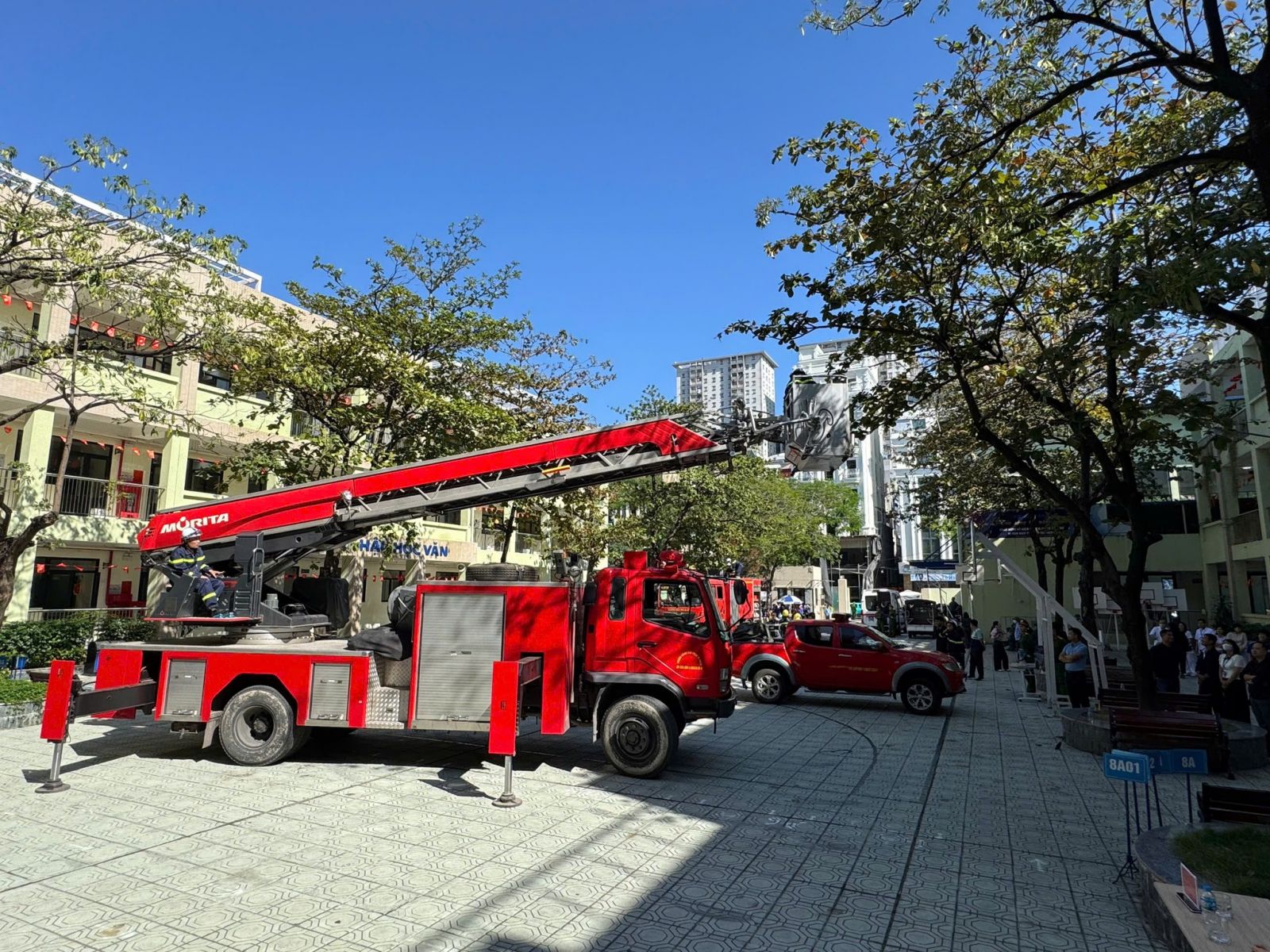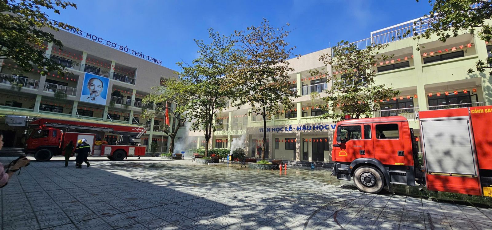 -Trong buổi tổng duyệt, các tình huống giả định được xây dựng sát với thực tế: cháy tại khu vực phòng học, có người bị mắc kẹt, khói lan nhanh… Lực lượng chữa cháy và cứu nạn đã nhanh chóng triển khai phương án báo động, sơ tán học sinh, dập lửa, cứu người và xử lý tình huống khẩn cấp một cách nhịp nhàng, chính xác và an toàn tuyệt đối.