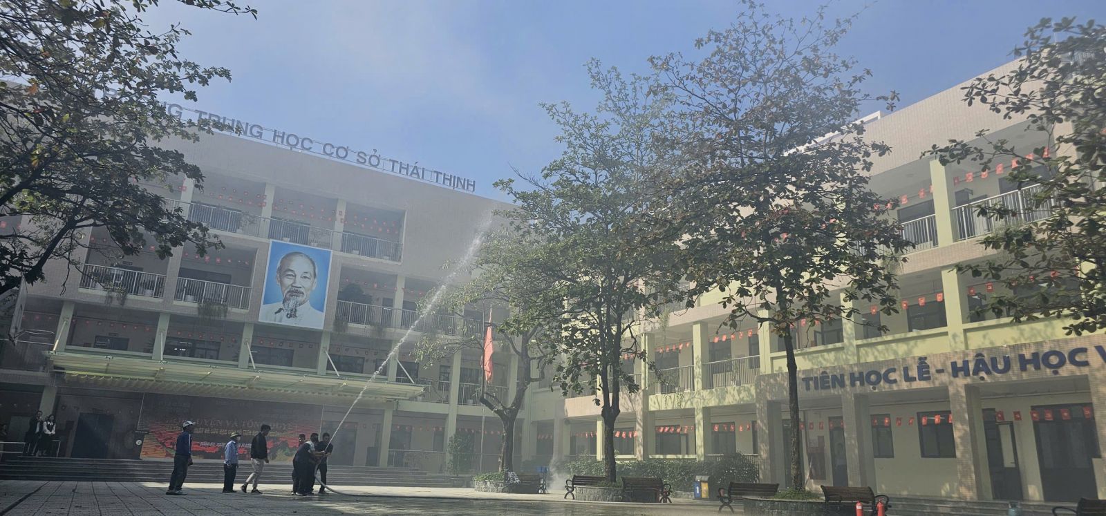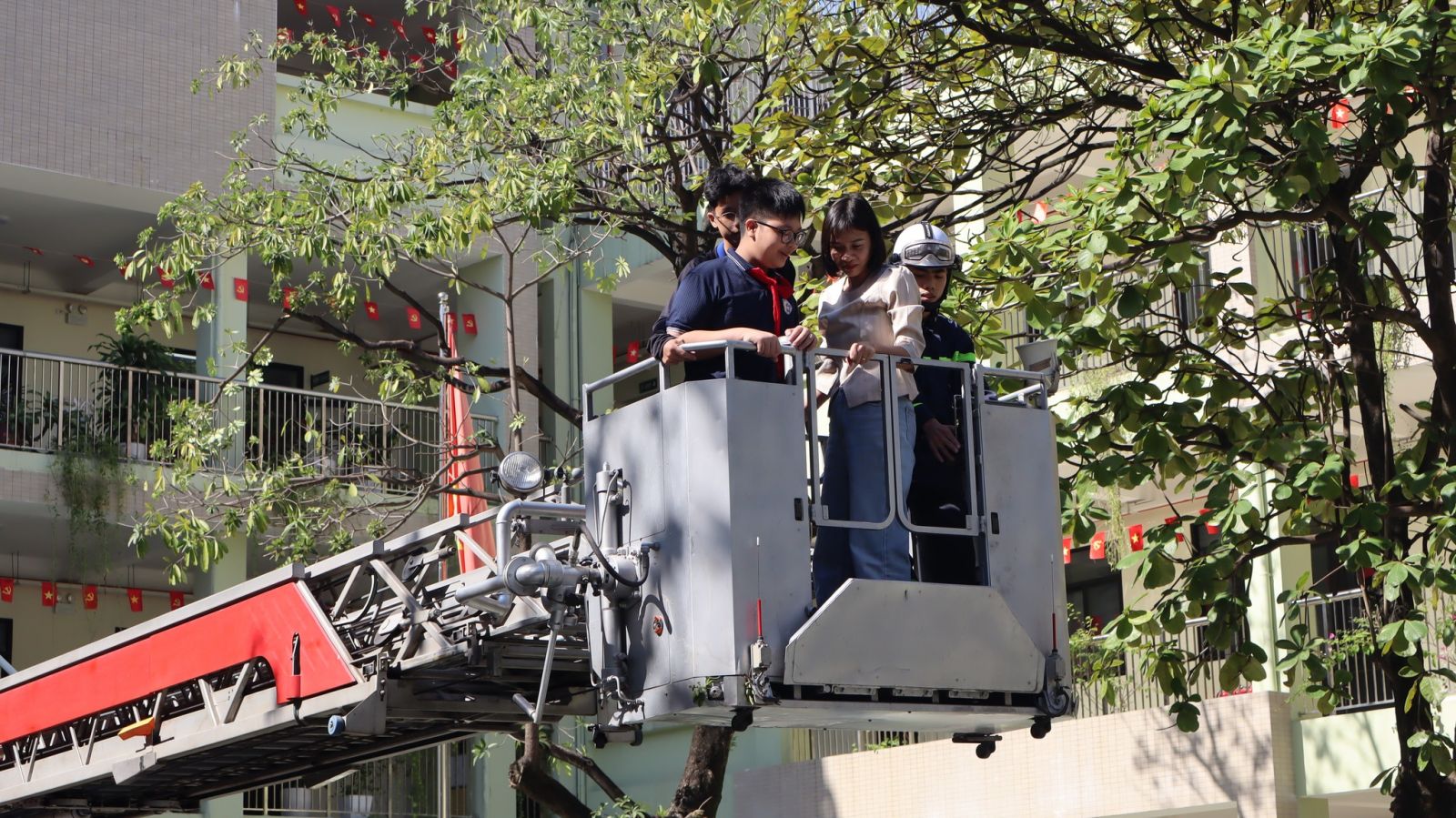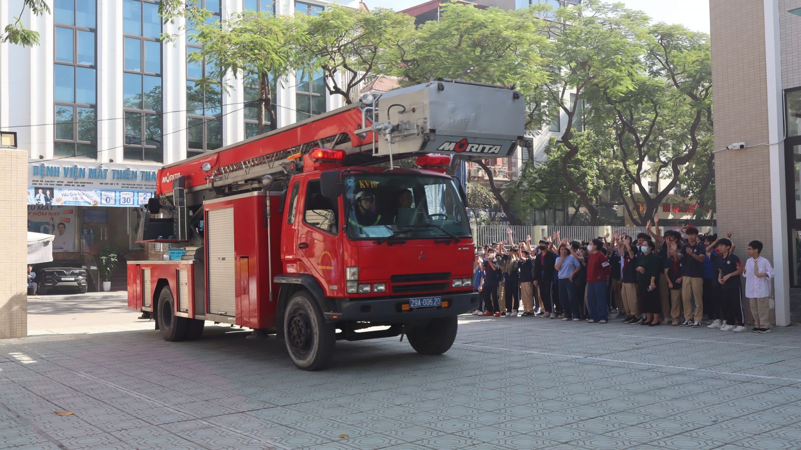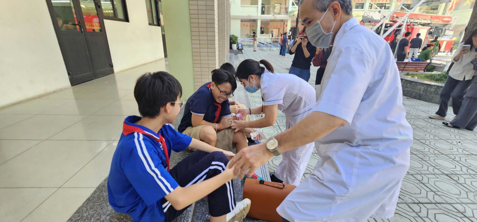 -Trong buổi tổng duyệt, các tình huống giả định được xây dựng sát với thực tế: cháy tại khu vực phòng học, có người bị mắc kẹt, khói lan nhanh… Lực lượng chữa cháy và cứu nạn đã nhanh chóng triển khai phương án báo động, sơ tán học sinh, dập lửa, cứu người và xử lý tình huống khẩn cấp một cách nhịp nhàng, chính xác và an toàn tuyệt đối.