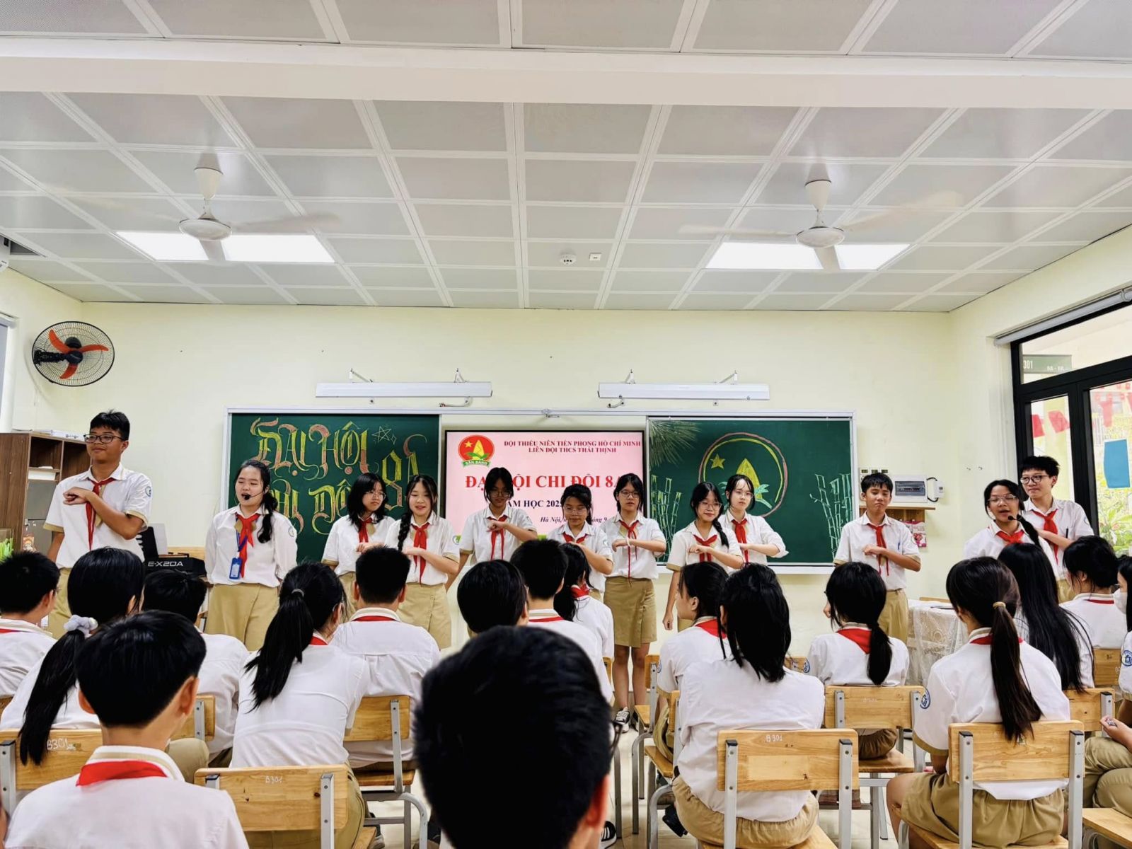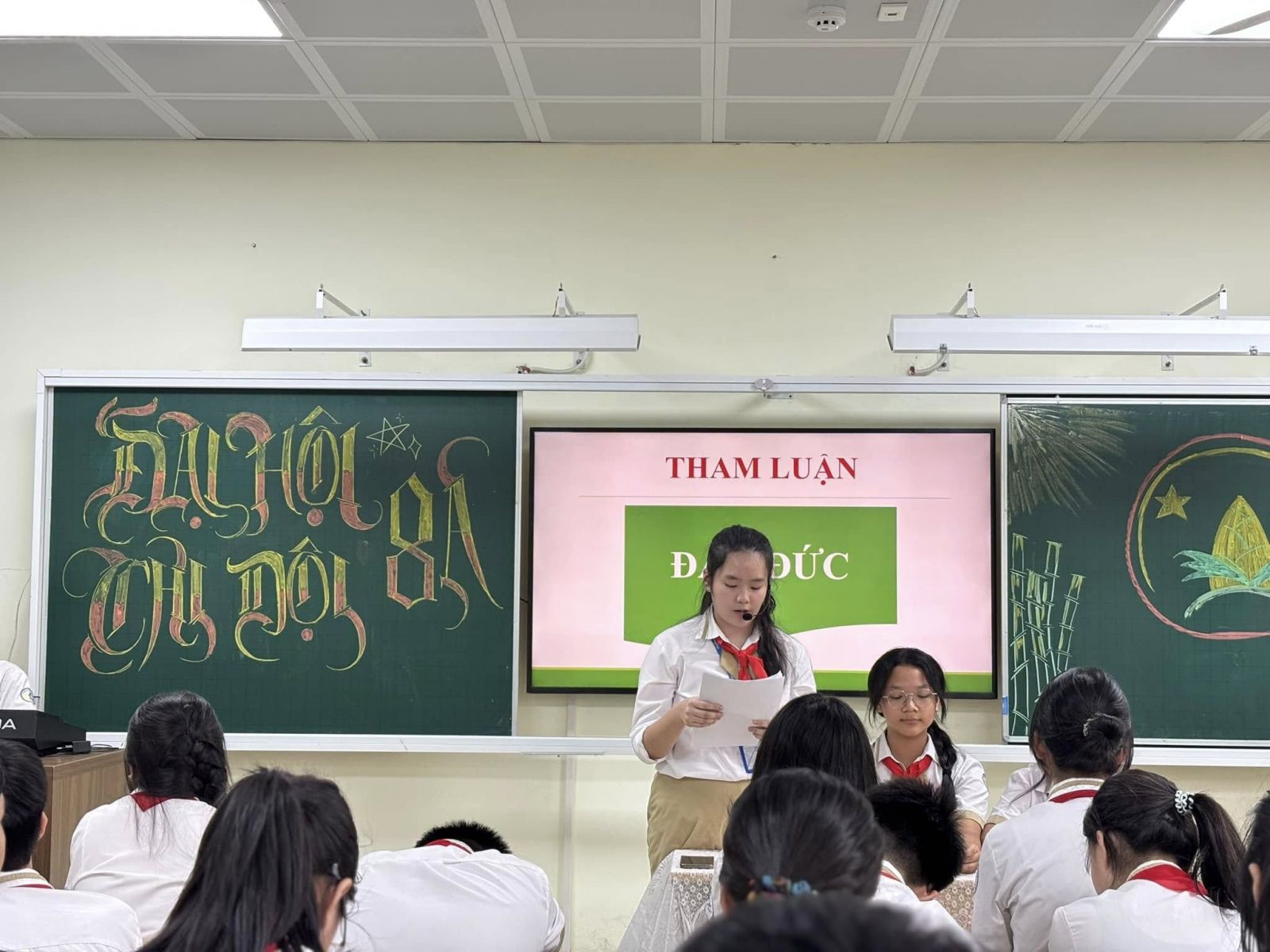 Được lựa chọn là chi đội đại diện tổ chức đại hội mẫu toàn trường, tập thể lớp 8A đã có sự chuẩn bị vô cùng công phu, kỹ lưỡng từ nội dung đến hình thức. Đại hội đã diễn ra đúng quy trình, đảm bảo đầy đủ các nội dung trọng tâm như: Báo cáo tổng kết hoạt động năm học 2024 - 2025, Phương hướng nhiệm vụ năm học 2025 - 2026, Tham luận, Bầu ban chỉ huy chi đội mới và phát động thi đua trong toàn chi đội.