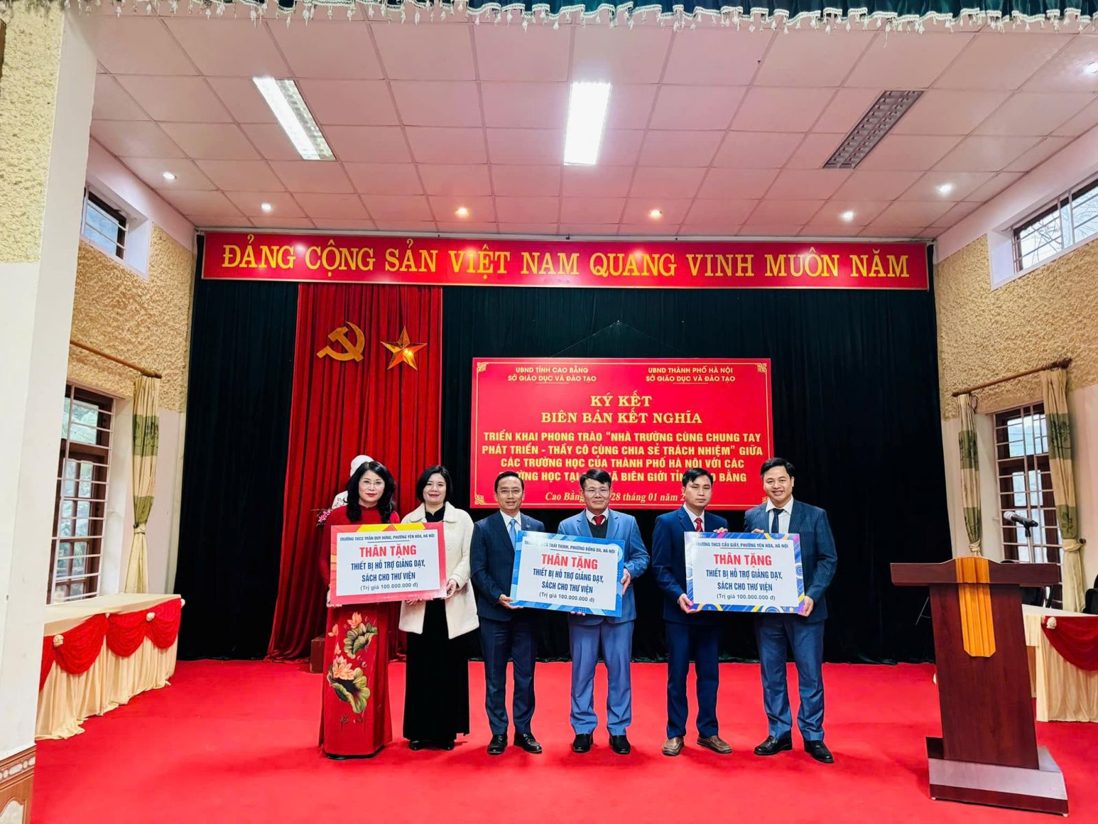 - Nhân dịp này, Chủ tịch UBND tỉnh Cao Bằng đã trao Bằng khen cho Trường THCS Thái Thịnh, Trường THCS Trần Duy Hưng và Trường THCS Cầu Giấy vì đã có nhiều đóng góp tích cực trong công tác hỗ trợ, phát triển giáo dục trên địa bàn tỉnh Cao Bằng, đặc biệt tại các xã biên giới, vùng đặc biệt khó khăn.