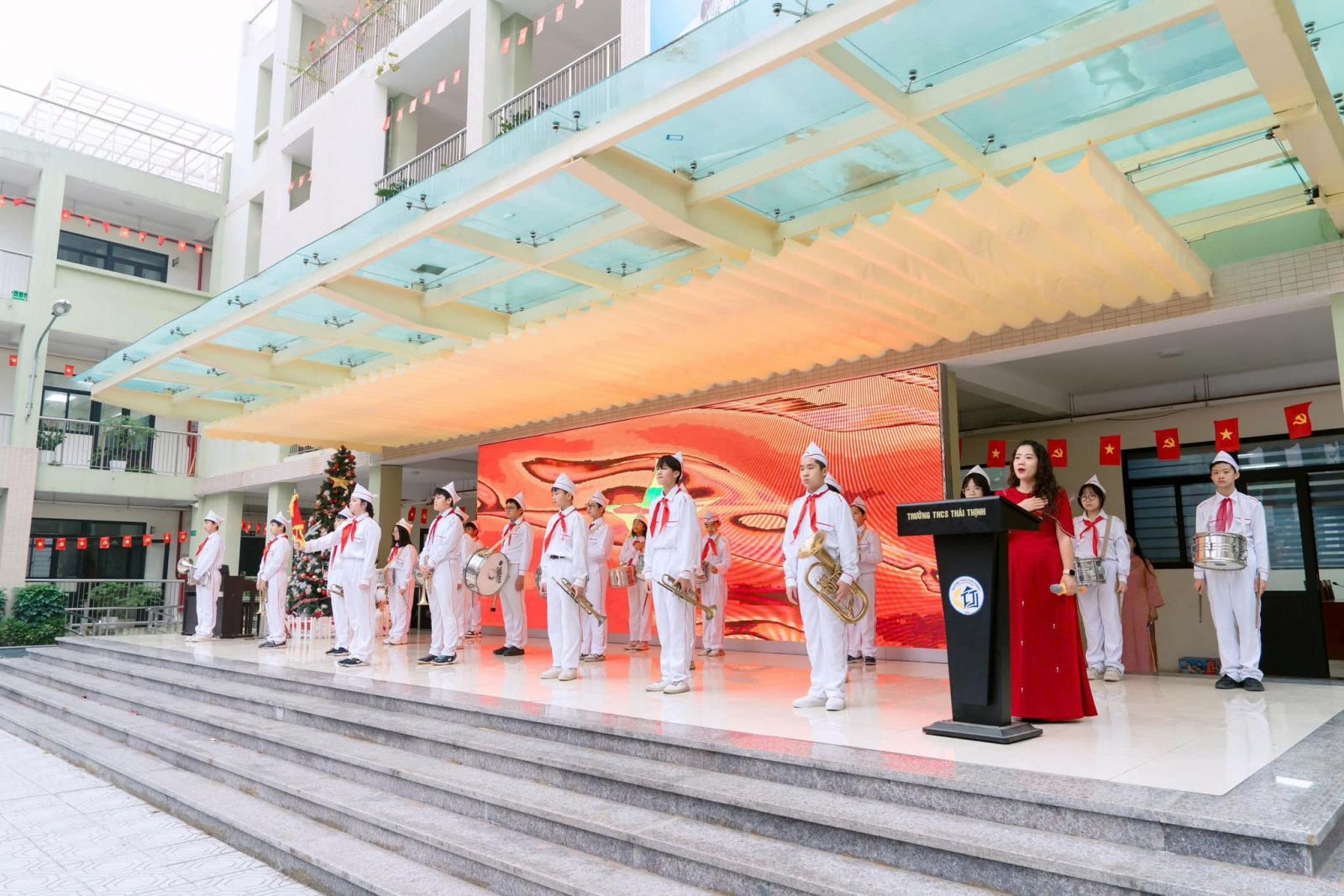 - Chương trình văn nghệ chào mừng do các bạn học sinh lớp 6A6 và 8A6 biểu diễn cũng đã mang đến không khí tươi vui, trong trẻo, thể hiện tình yêu mái trường và niềm tự hào của học sinh Thái Thịnh.