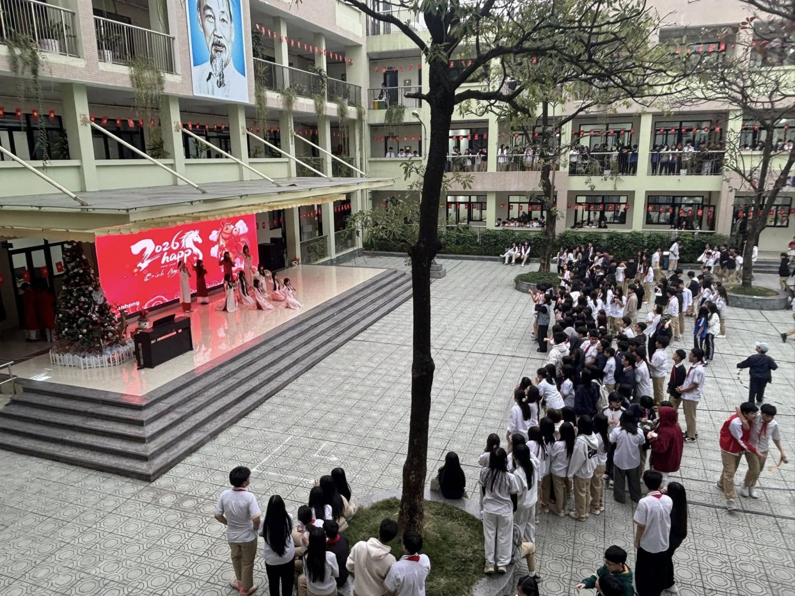 Chương trình thêm phần rộn ràng với những tiết mục sinh hoạt dưới cờ đặc sắc, được chuẩn bị công phu và thể hiện đầy tự tin đến từ tập thể lớp 8A3 và 6A3. Các tiết mục không chỉ mang đậm màu sắc tươi vui của ngày xuân mà còn thể hiện niềm tự hào, lòng biết ơn và niềm tin son sắt vào sự lãnh đạo của Đảng.