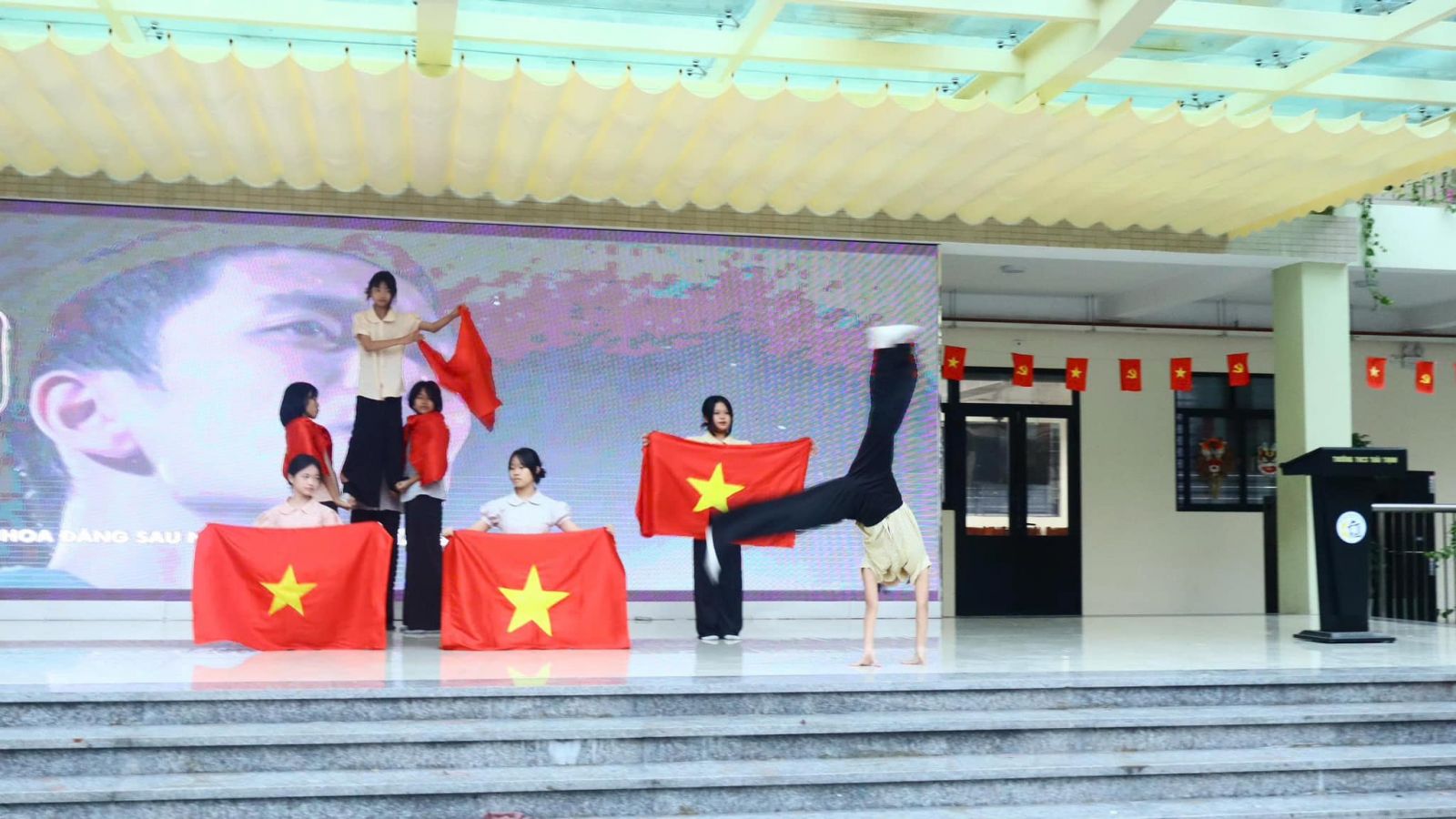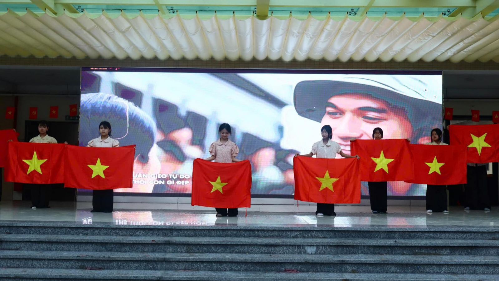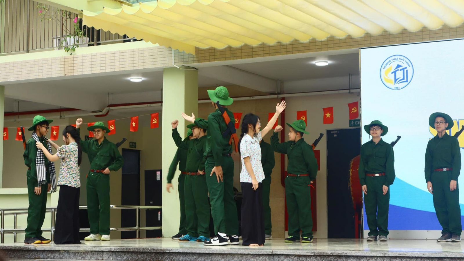 - Tiếp nối phần vinh danh, các bạn học sinh lớp 8A đã thực hiện tiết mục sinh hoạt dưới cờ chào mừng 22/12 với chủ đề “Tình yêu thương thời chiến” – một phần trình diễn sâu lắng, giàu ý nghĩa truyền thống và giáo dục.