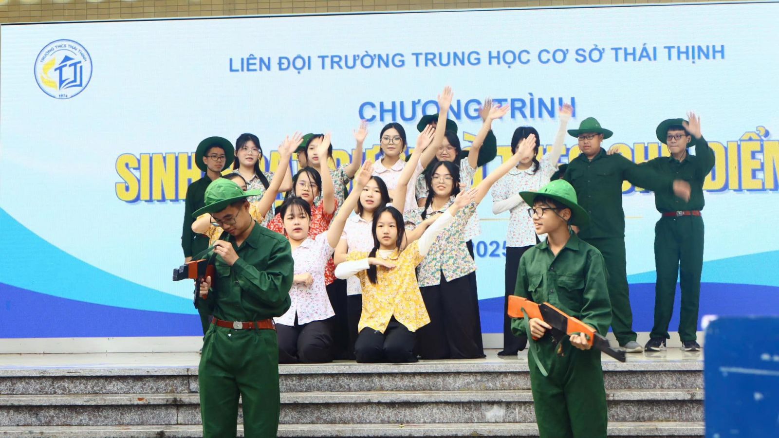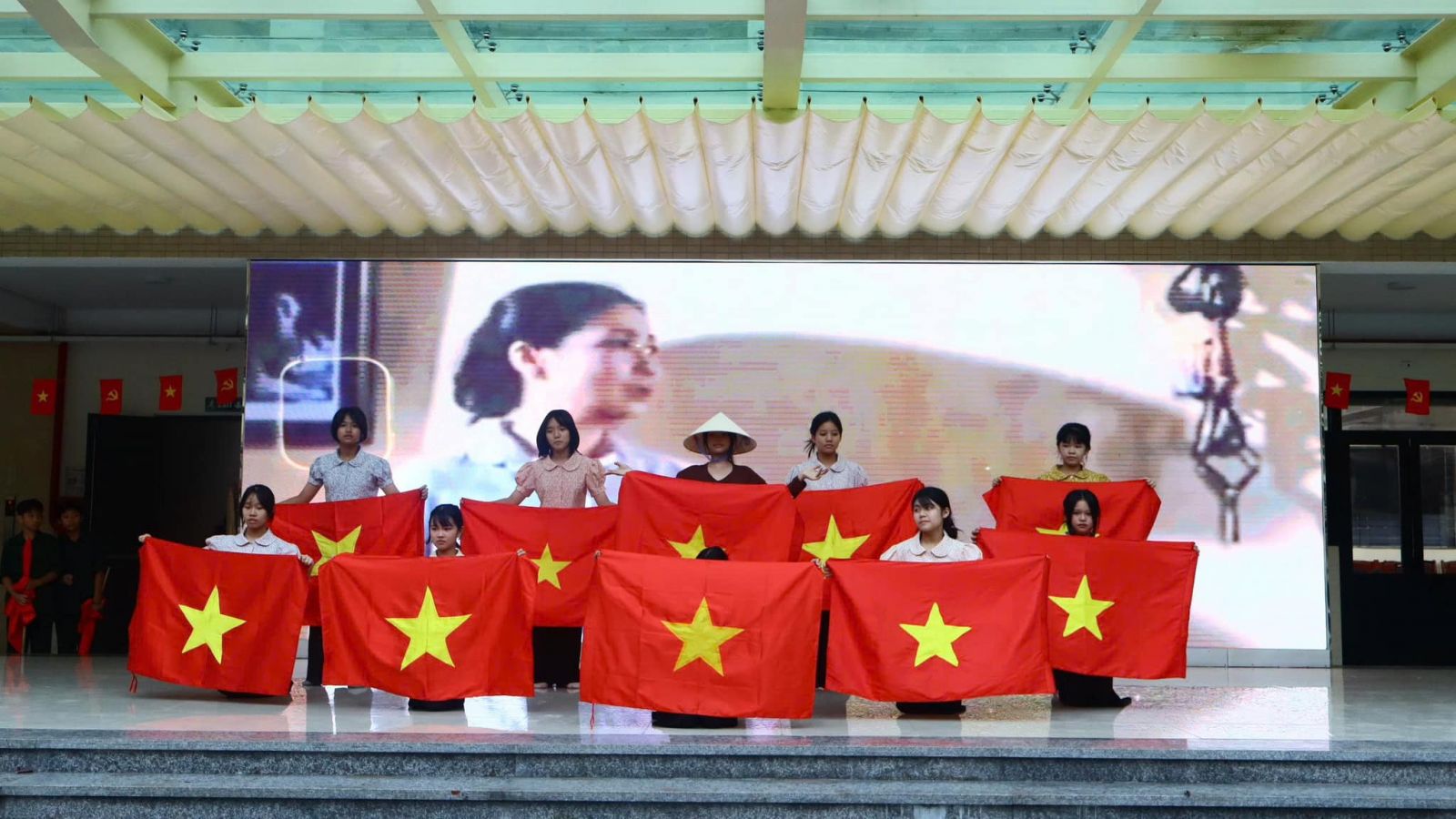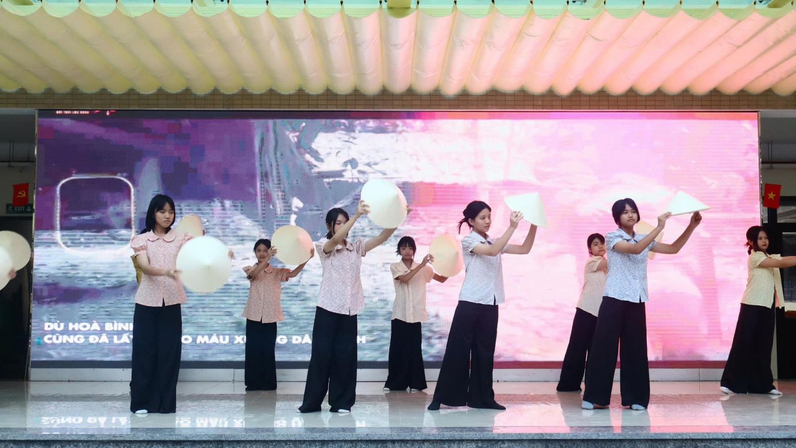 - Tiếp nối phần vinh danh, các bạn học sinh lớp 8A đã thực hiện tiết mục sinh hoạt dưới cờ chào mừng 22/12 với chủ đề “Tình yêu thương thời chiến” – một phần trình diễn sâu lắng, giàu ý nghĩa truyền thống và giáo dục.