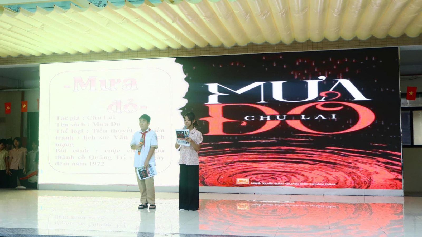 Hoạt động nổi bật của khối chiều là Chương trình giới thiệu sách do lớp 7A5 thực hiện. Các bạn mang đến phần giới thiệu cuốn tiểu thuyết “Mưa đỏ” đầy lôi cuốn, kết hợp cùng tiết mục mô phỏng tác phẩm độc đáo, nghệ thuật và giàu cảm xúc, để lại ấn tượng mạnh mẽ cho toàn trường.