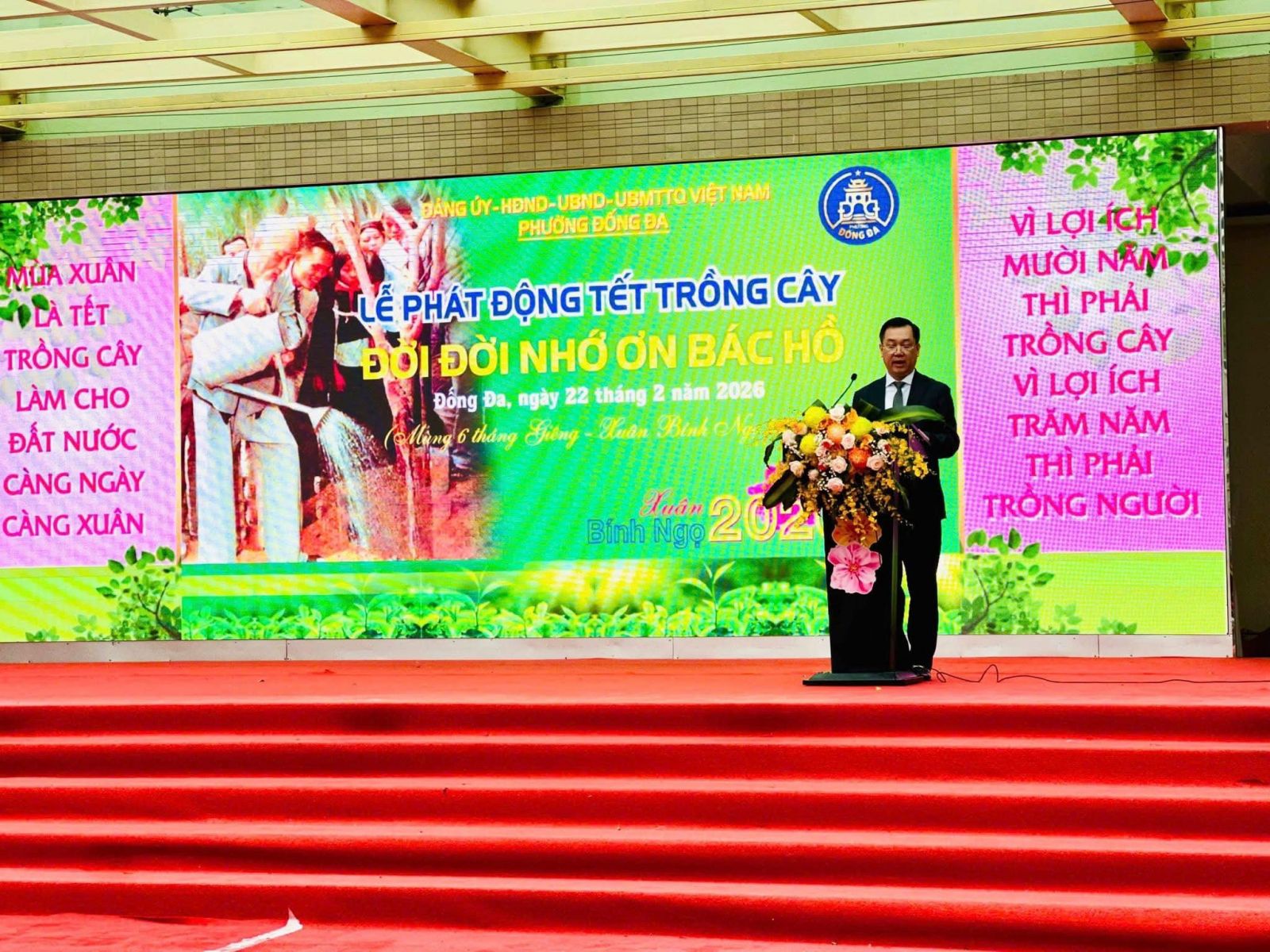Phát biểu tại chương trình, đồng chí Nguyễn Hoàng Hà – Phó Chủ tịch UBND phường Đống Đa – nhấn mạnh ý nghĩa sâu sắc của phong trào trồng cây theo lời dạy của Hồ Chí Minh. Sinh thời, Bác luôn quan tâm tới việc bảo vệ môi trường, gìn giữ thiên nhiên và xây dựng không gian sống trong lành cho nhân dân. Người căn dặn mỗi người dân không chỉ tích cực trồng cây mà còn phải có ý thức chăm sóc, bảo vệ, tránh lãng phí nguồn tài nguyên quý giá.