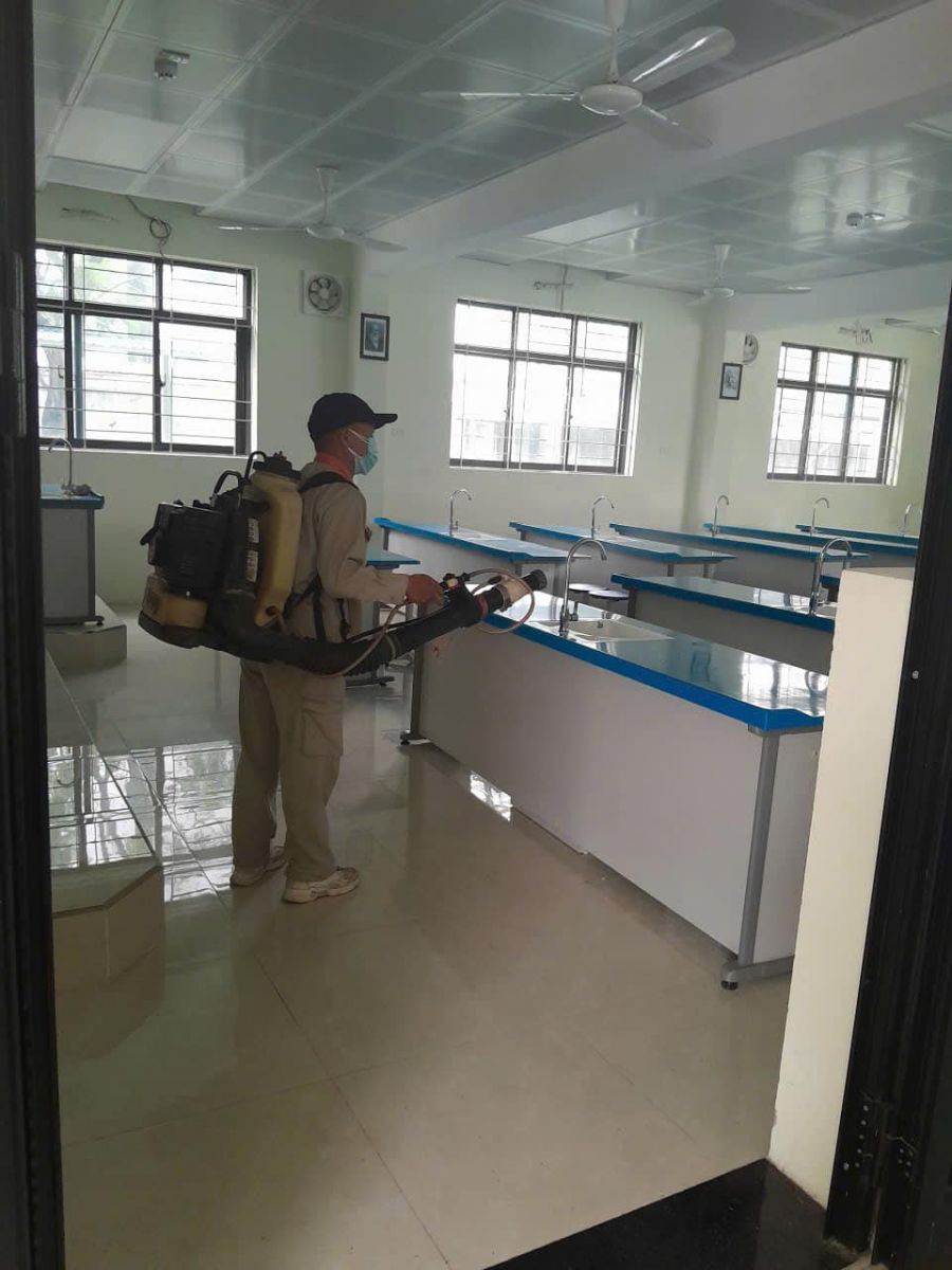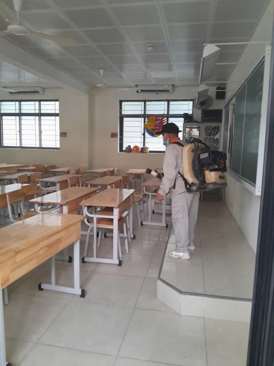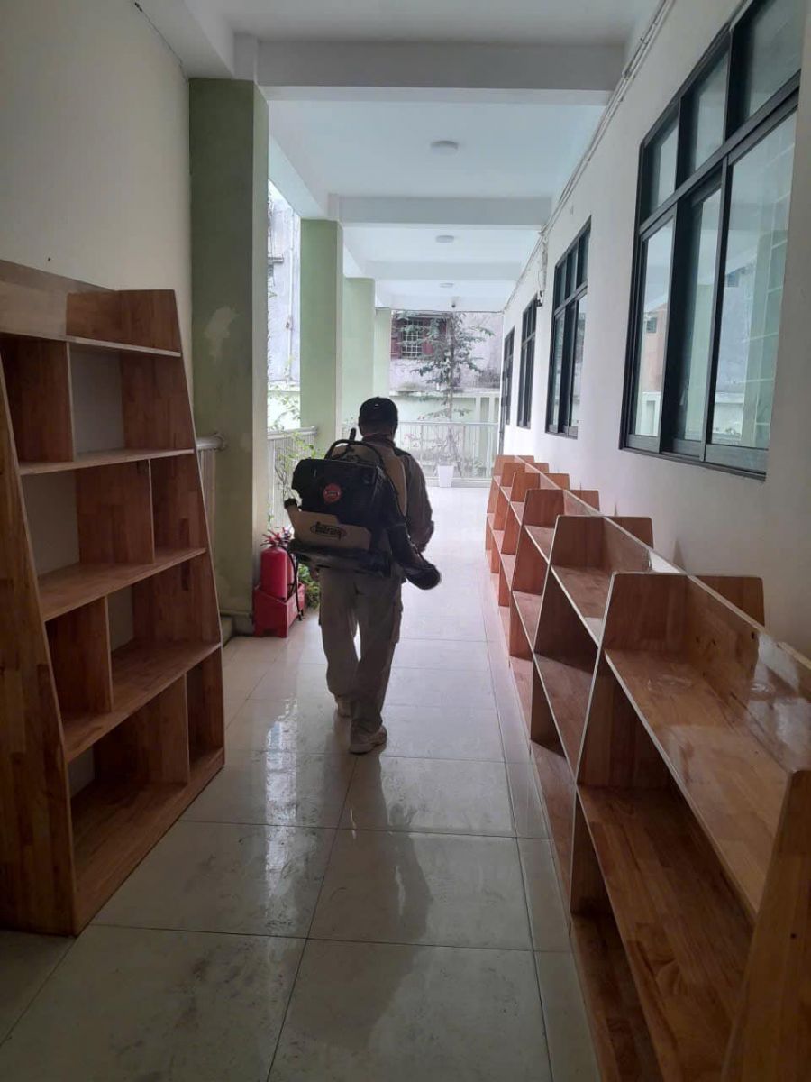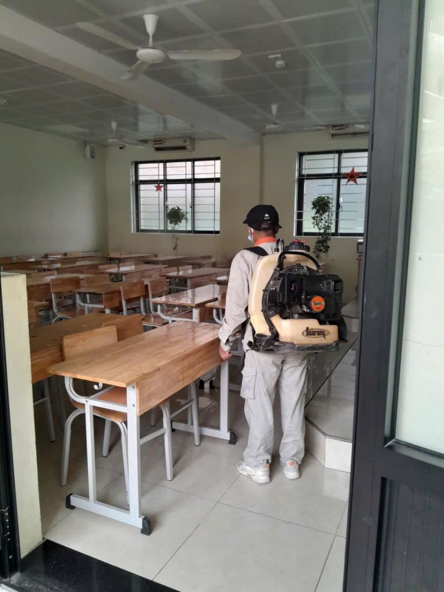 Công tác phun thuốc được thực hiện kỹ lưỡng tại tất cả các lớp học, hành lang, khu vực vệ sinh, sân trường và những điểm có nguy cơ phát sinh muỗi.