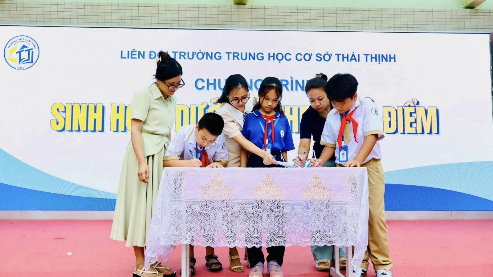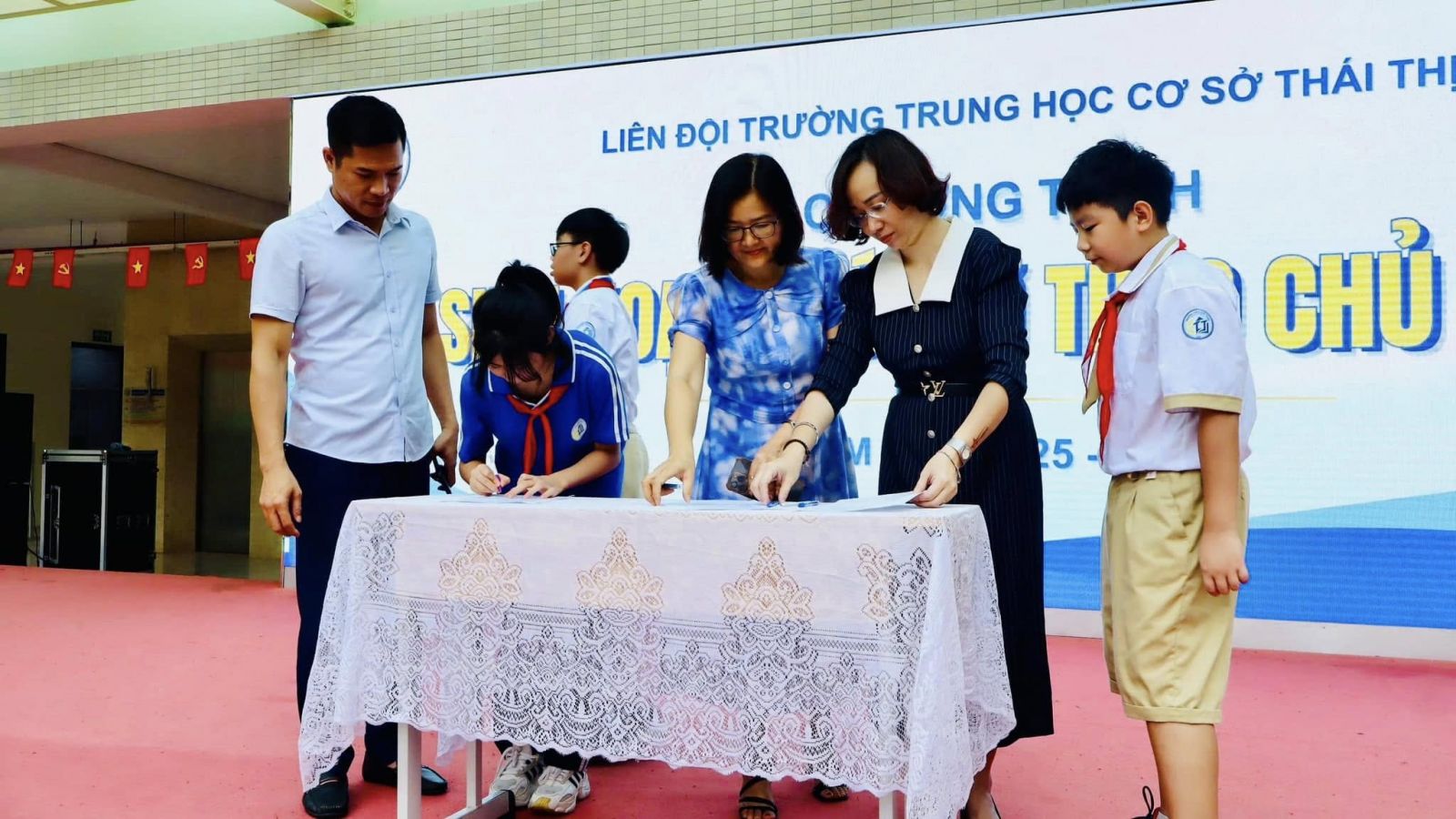 - Điểm nhấn nổi bật của buổi sinh hoạt là Lễ ký cam kết giữa Học sinh - Gia đình - Nhà trường về việc thực hiện nghiêm túc 3 nội dung trọng tâm trong năm học 2025–2026: