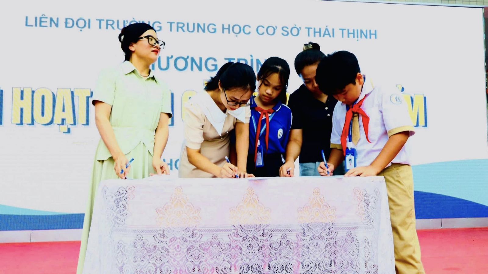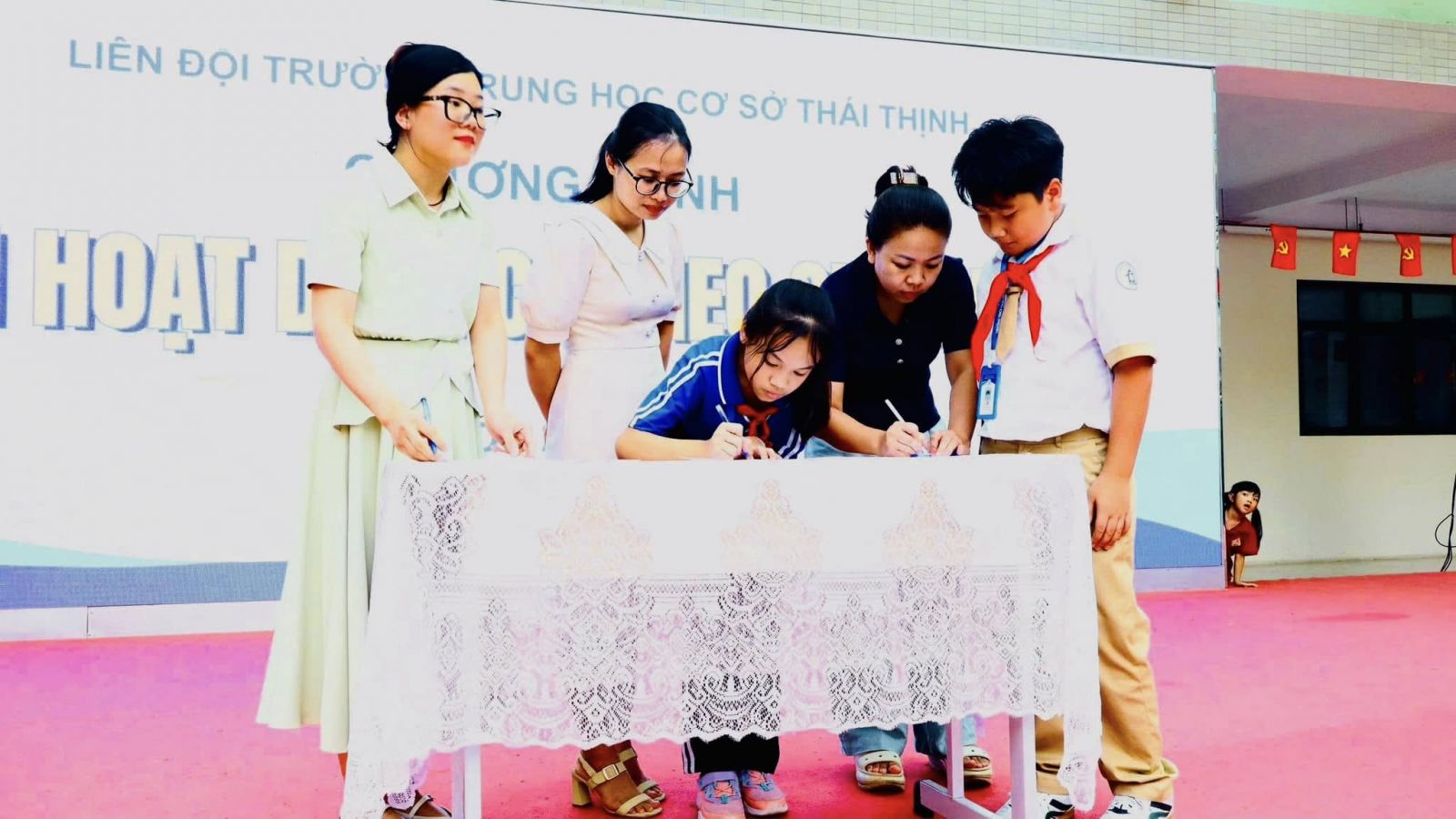 - Buổi lễ ký cam kết là lời nhắc nhở sâu sắc tới mỗi học sinh về trách nhiệm với bản thân, gia đình và cộng đồng. Sự đồng hành của phụ huynh và giáo viên sẽ tạo nên một môi trường giáo dục tích cực, giúp các em học sinh phát triển toàn diện cả về tri thức và nhân cách.