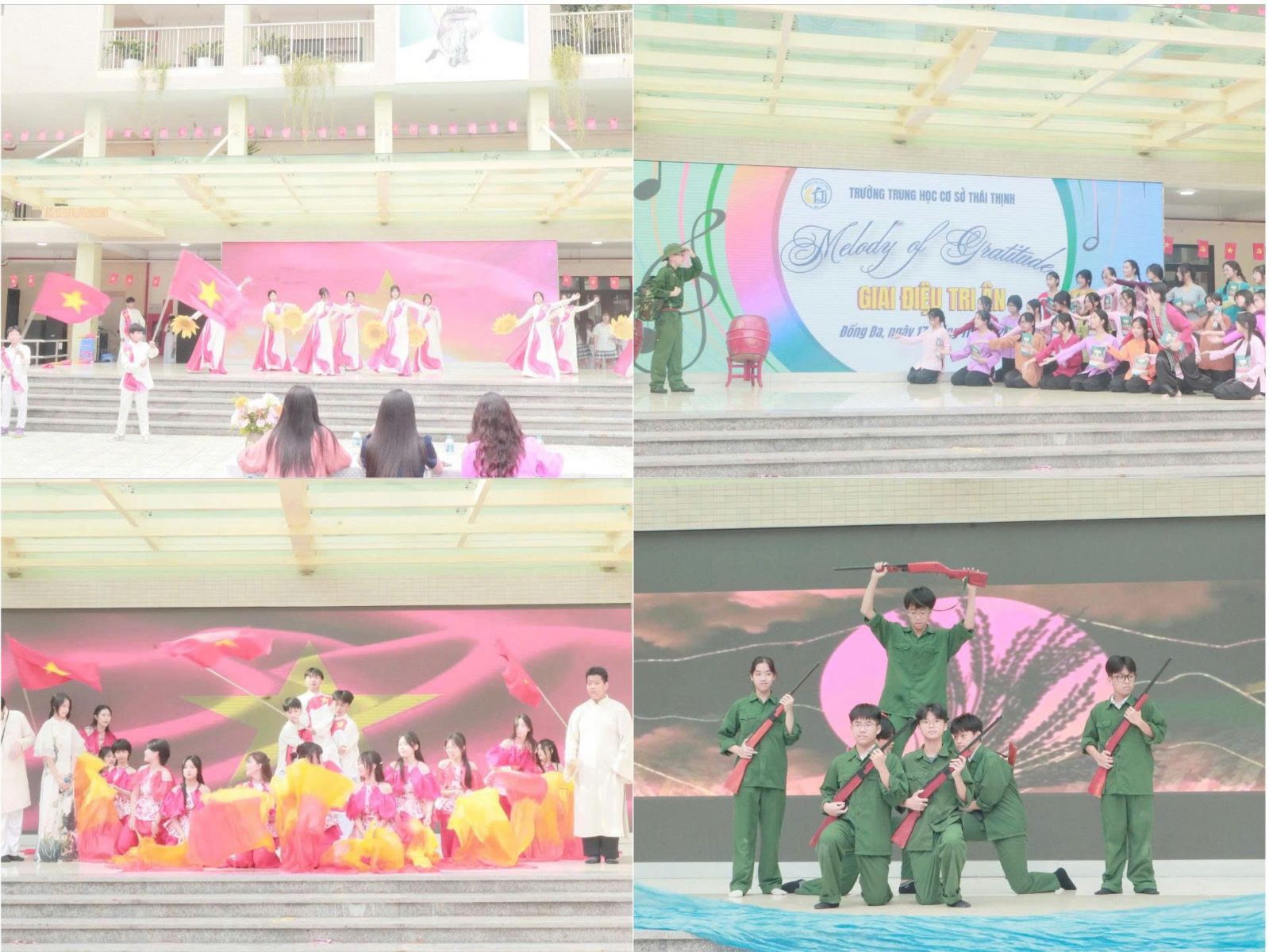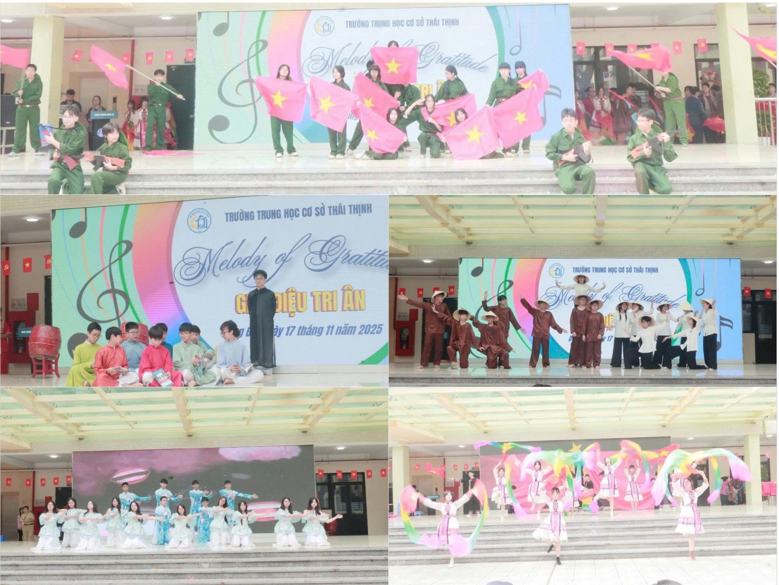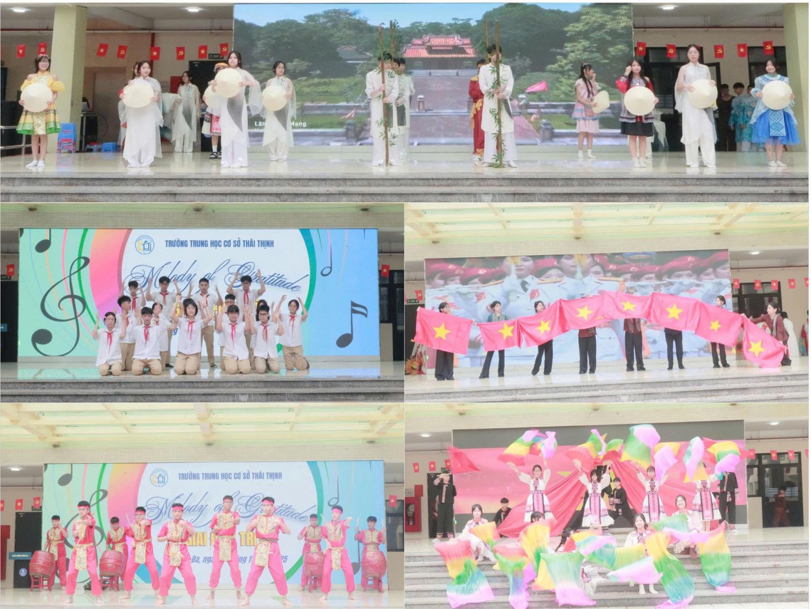 Các lớp khối 8 và 9 đã mang đến những phần trình diễn vô cùng ấn tượng – giọng hát đầy cảm xúc, phong cách tự tin, cùng tinh thần biết ơn lan tỏa qua từng giai điệu. Mỗi tiết mục là một thông điệp đẹp, một lời tri ân ý nghĩa gửi tới quê hương, đất nước, thầy cô và mái trường.