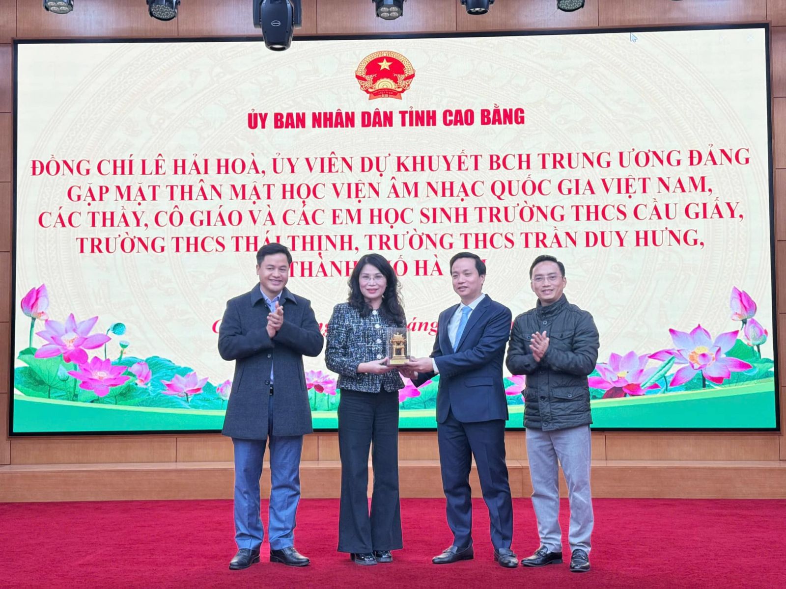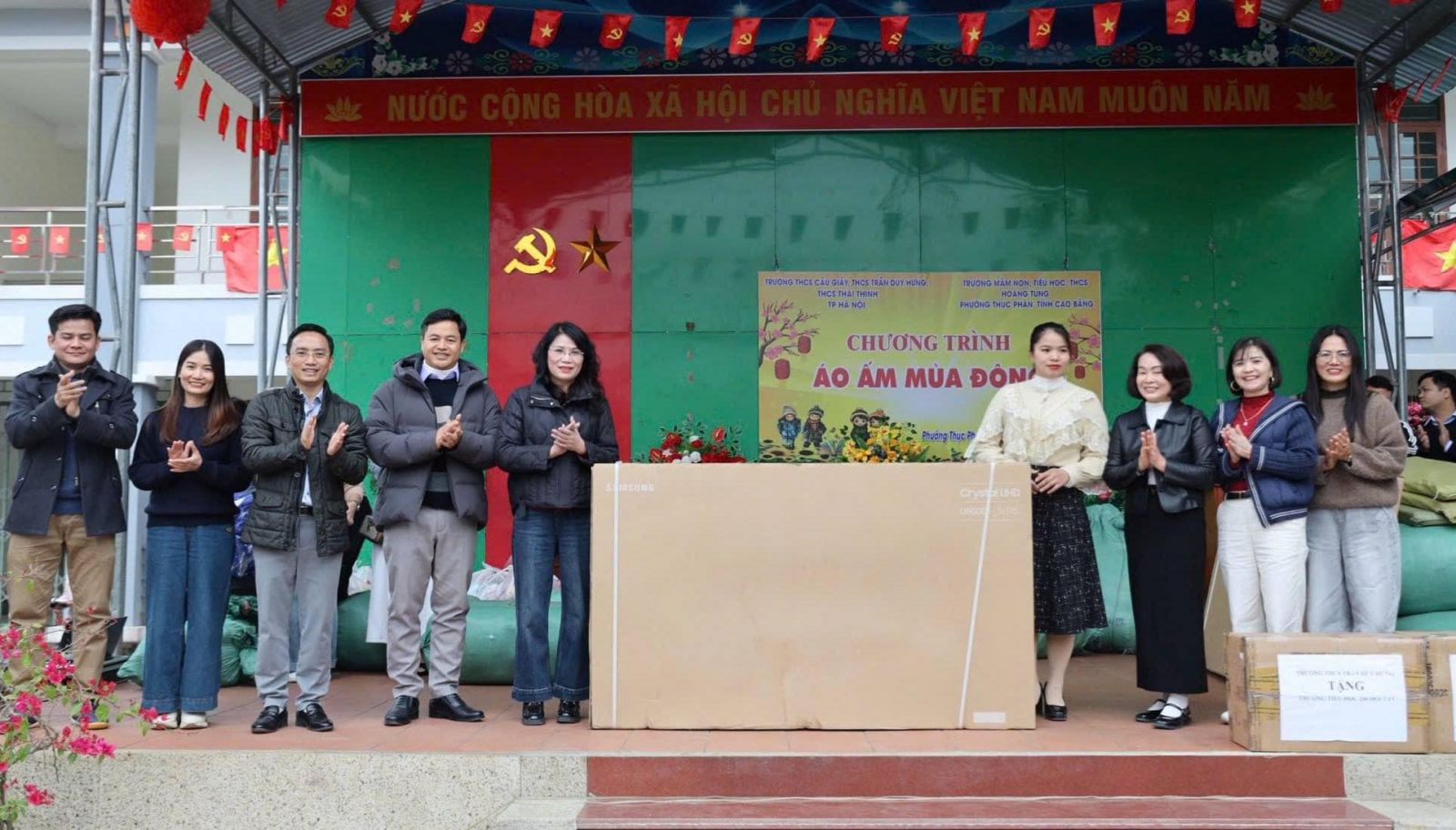 Trong khuôn khổ chương trình, đồng chí Lê Hải Hòa – Phó Bí thư Tỉnh ủy, Chủ tịch UBND tỉnh Cao Bằng biểu dương, ghi nhận đoàn công tác liên trường THCS Thái Thịnh – THCS Cầu Giấy – THCS Trần Duy Hưng đã tham gia tích cực vào các hoạt động thiện nguyện, trao tặng quà, áo ấm và thiết bị học tập cho học sinh có hoàn cảnh khó khăn tại địa phương, góp phần sẻ chia, động viên các em vươn lên trong học tập và cuộc sống.