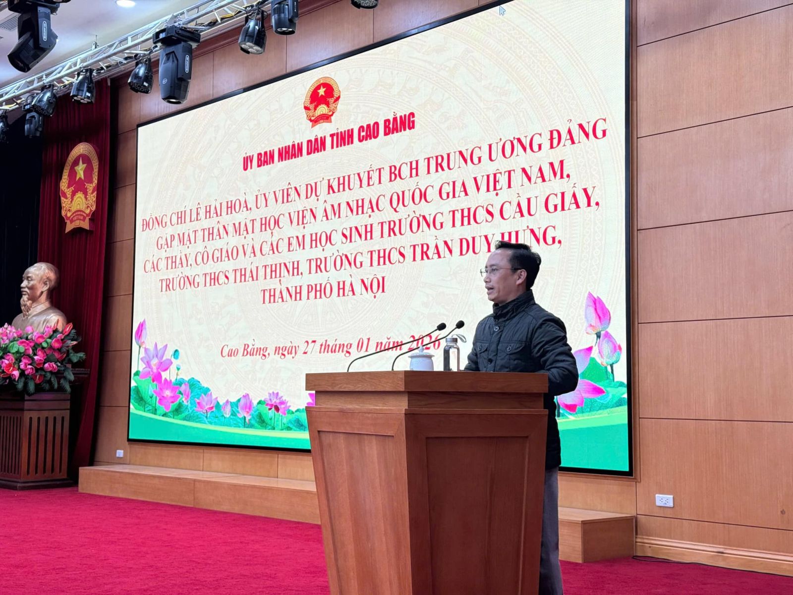 Phát biểu tại buổi gặp mặt, lãnh đạo tỉnh Cao Bằng bày tỏ sự vui mừng chào đón đoàn về thăm Cao Bằng đúng dịp kỷ niệm sự kiện lịch sử trọng đại của dân tộc; đồng thời nhấn mạnh ý nghĩa của các hoạt động giáo dục truyền thống, đặc biệt là việc đưa học sinh về với các địa chỉ đỏ, giúp các em hiểu sâu sắc hơn về lịch sử, hun đúc lòng yêu nước, niềm tự hào dân tộc và ý thức trách nhiệm của thế hệ trẻ.